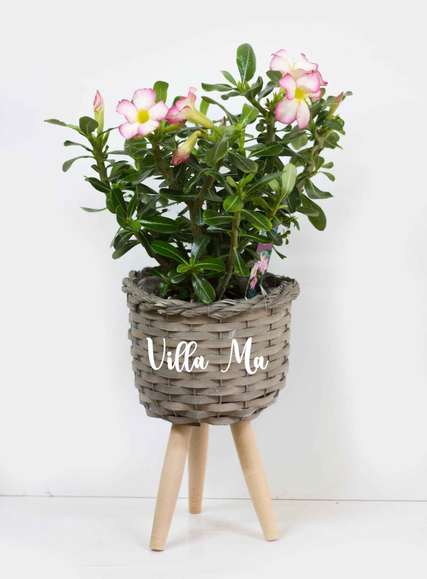 Адениум - засухоустойчивое растение, может скидывать листья . Ценится за каудекс, утолщённый стебель и корни, которым можно придавать разнообразную форму.