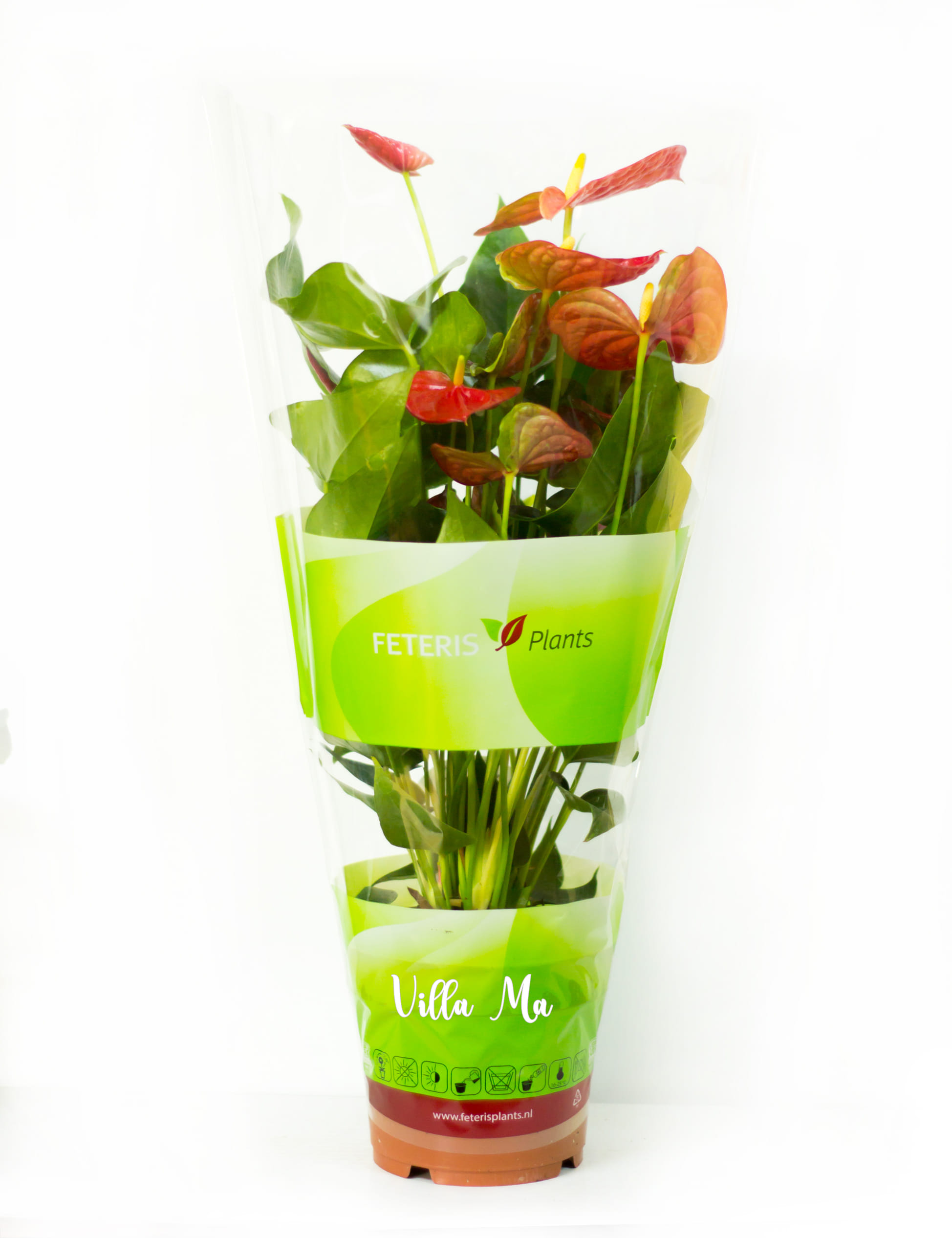 Большой, красивый для подарка, антуриум в нарядной целлофановой упаковке.