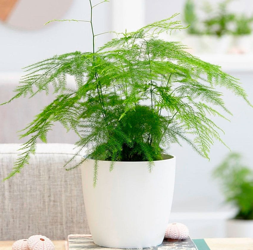 В продаже сорт "Plumosus", его воздушные листья добавляют изящества в букеты и композиции, отлично смотрятся и в обычных горшках, и в ампелях.