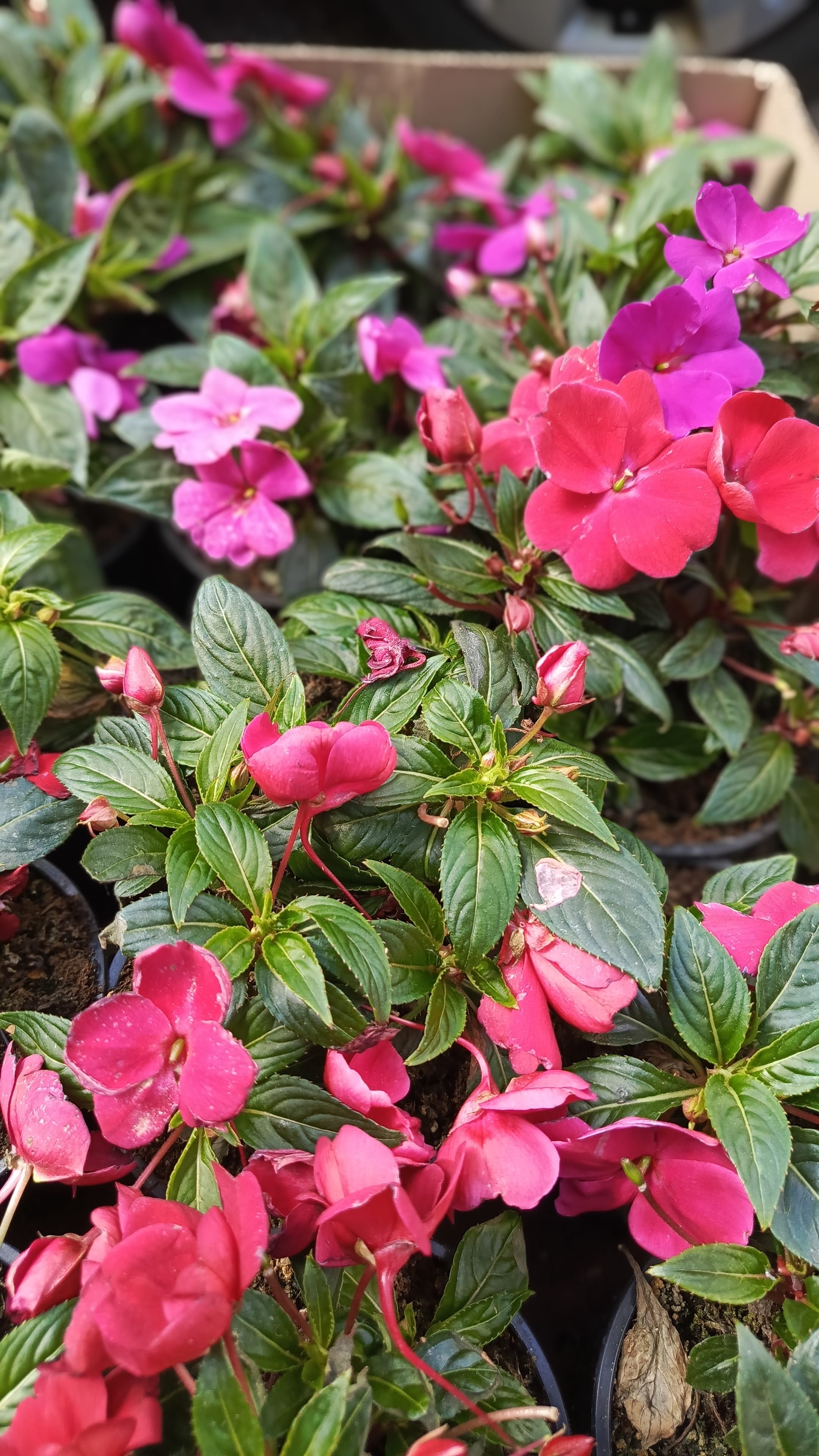 Бальзамин Новогвинейский в ассортименте - комнатное растение цветок в горшке, возможно использование в ландшафтном дизайне, высаживать в тёплый период на клумбы или уличные вазоны. Разрастается шикарно, непрерывное цветение.