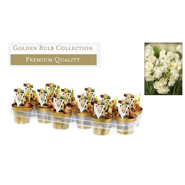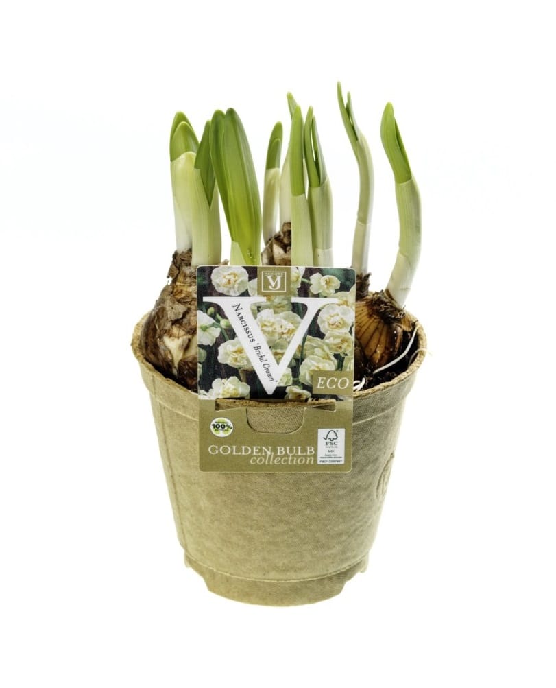 Белые нарциссы Брайдл Кроун букет в горшке в подарочной упаковке.