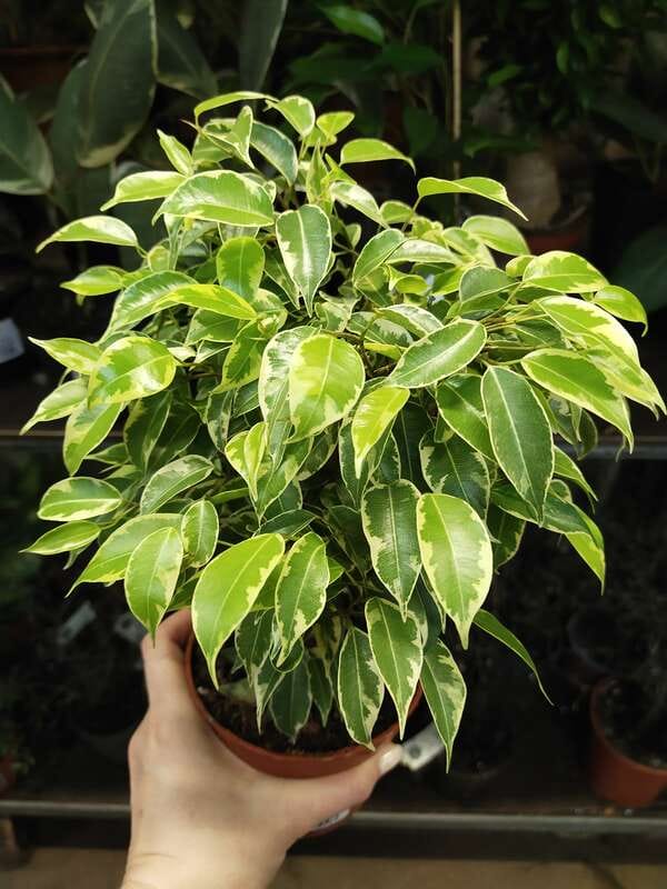 Бенджамина Голден Кинг фикус - белый красивый вариегатный фикус, самый светлый неприхотливый сорт.