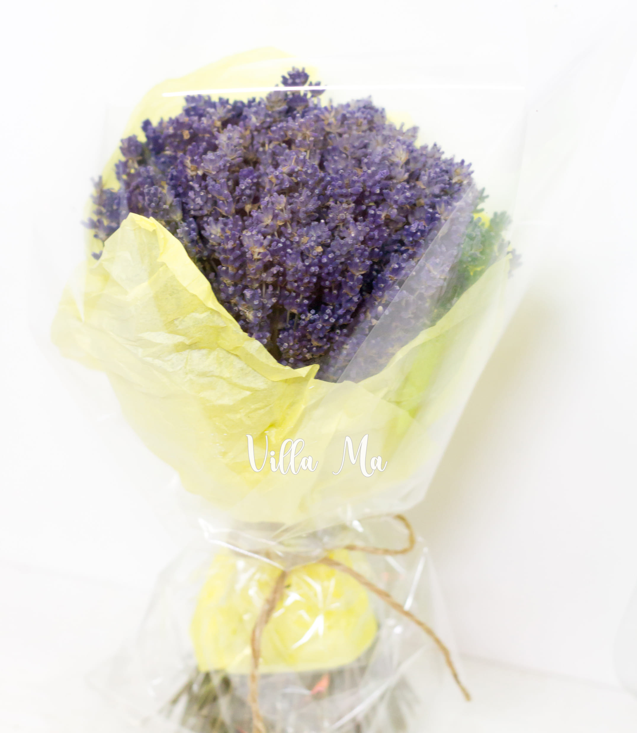Ножка букета из лаванды "Прованс" обмотана натуральной бечевкой.