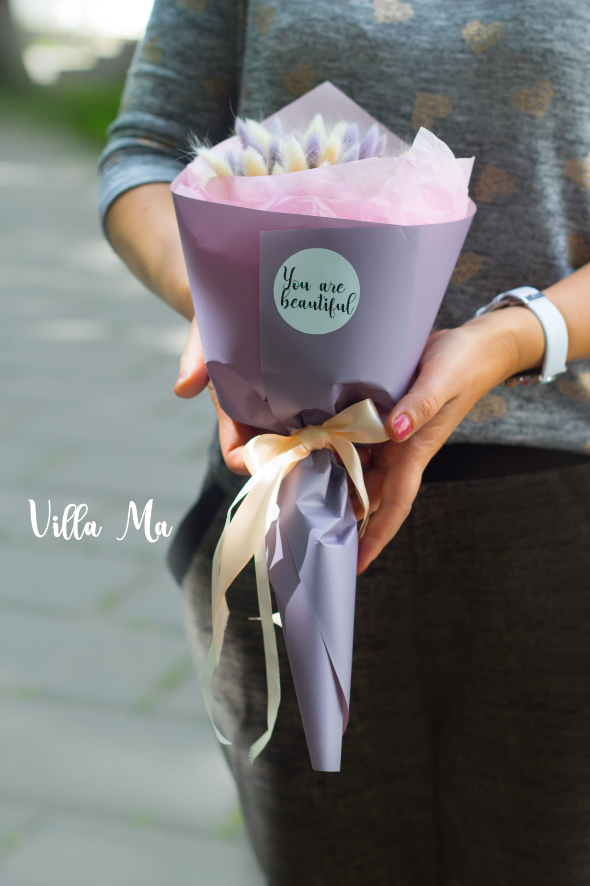 Букет Настроение - подарите самый пушистый и милый букет-комплимент из сухоцветов лагуруса (заячий хвост) в модной упаковке.