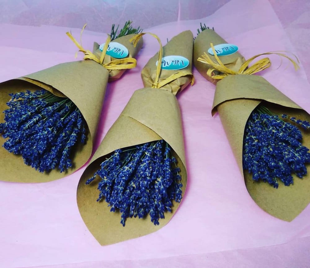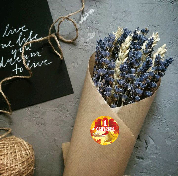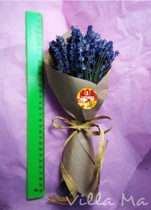 милый моно или смешанный лавандовый букет-сухоцвет с пожеланием-этикеткой к началу учебного года от флористов Villa Ma.