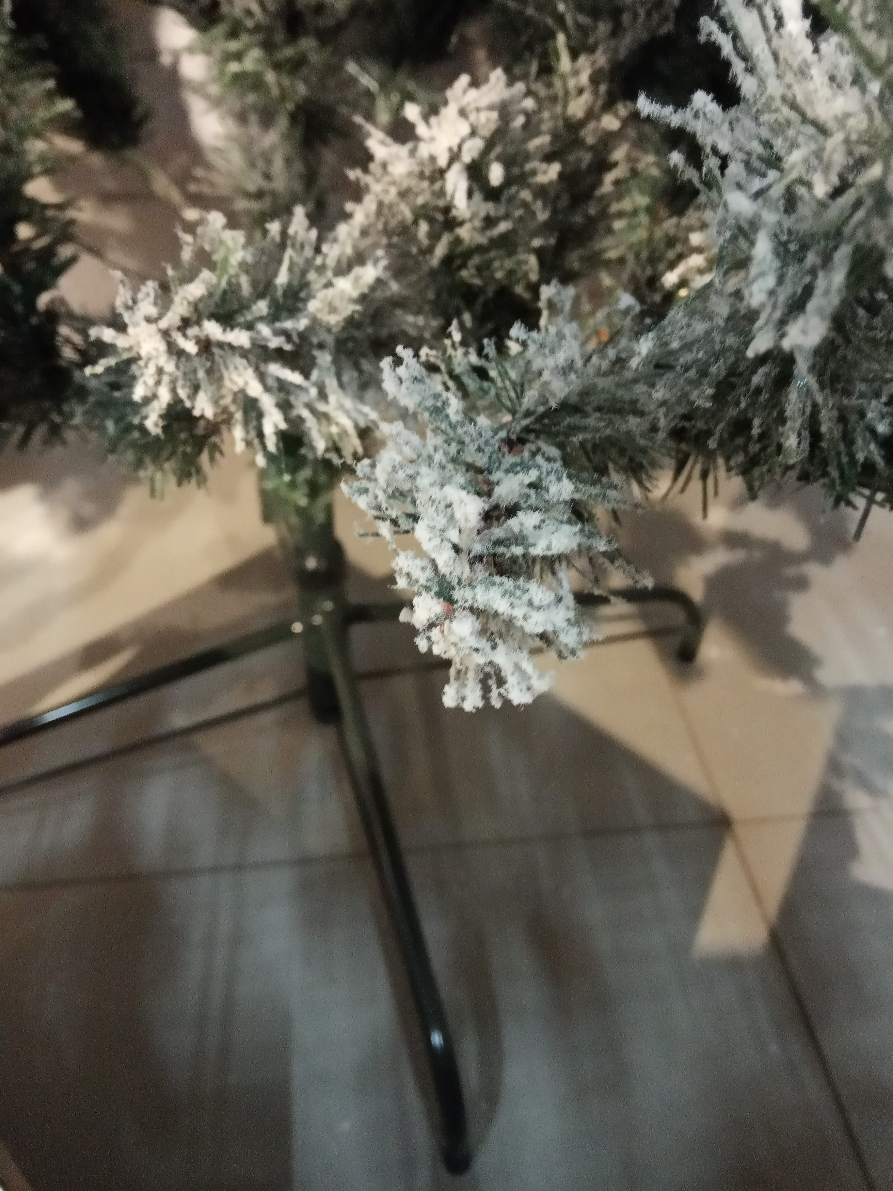 Зеленая искусственная ель из пластика Аляска - цвет зеленый \ белый. материал - пластик. на металлической подставке