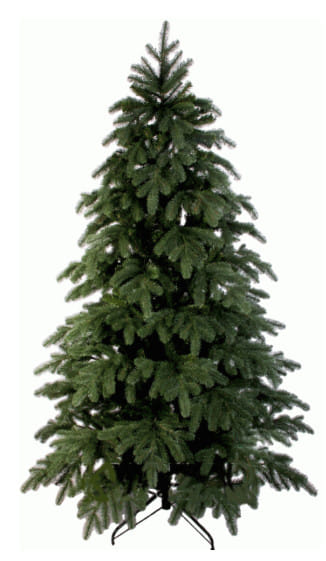 Зеленая искусственная ель из пластика. цвет натурально-зеленый. материал - пластик. на металлической подставке