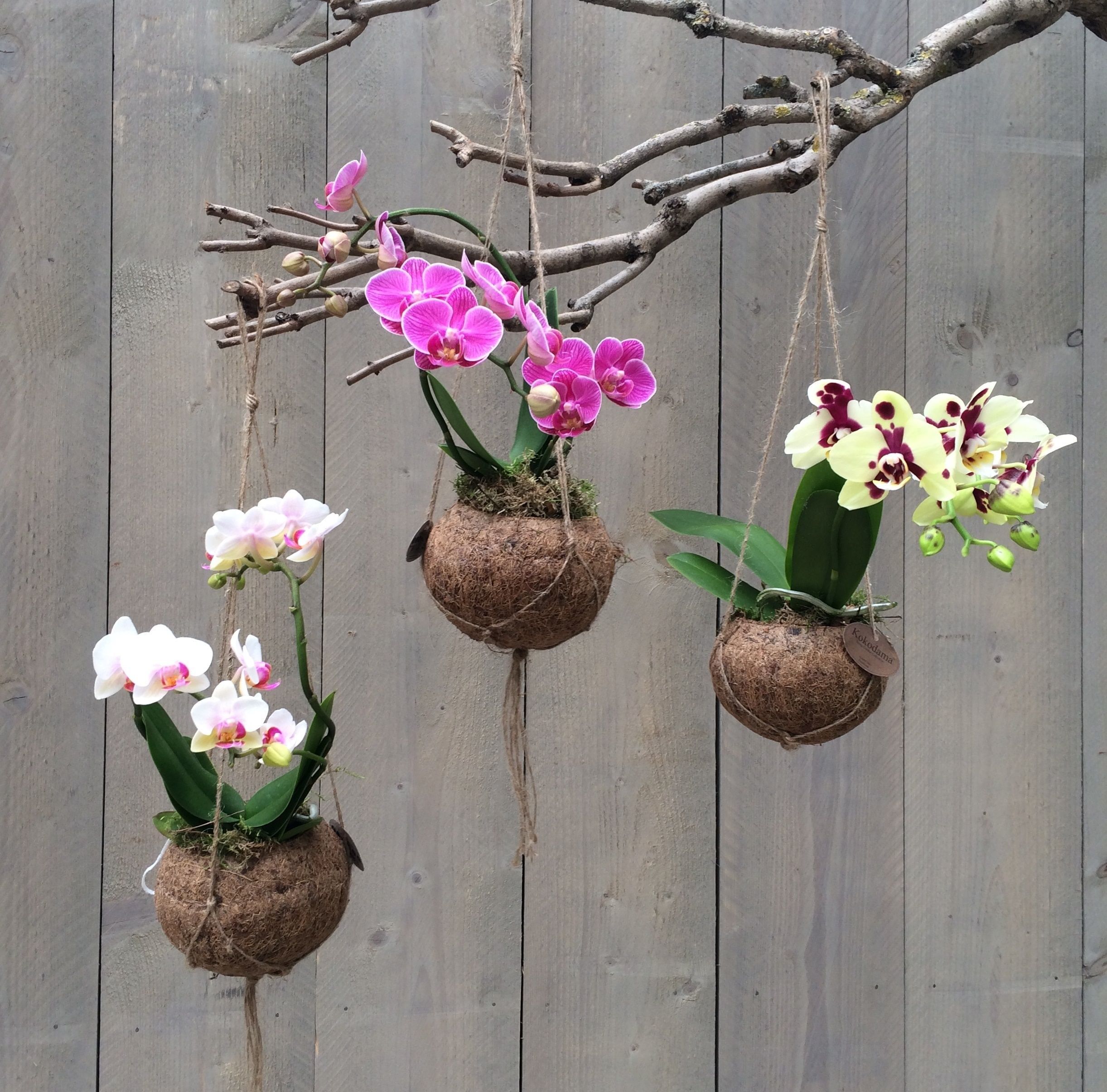 Фаленопсис Кокедама Аманда - Миди-Фаленопсис микс ярких расцветок в оригинальной подарочной упаковке в круглых горшках из кокосового волокна, в которых им очень комфортно.