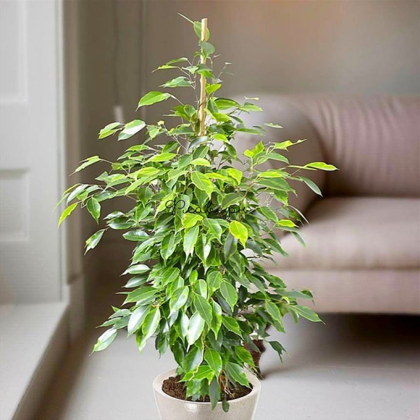 Фикус Бенджамина сорт Анастасия - мелколистный кустарник, представитель семейства Тутовые, отличающийся прямостоячим побегом и густой кроной.