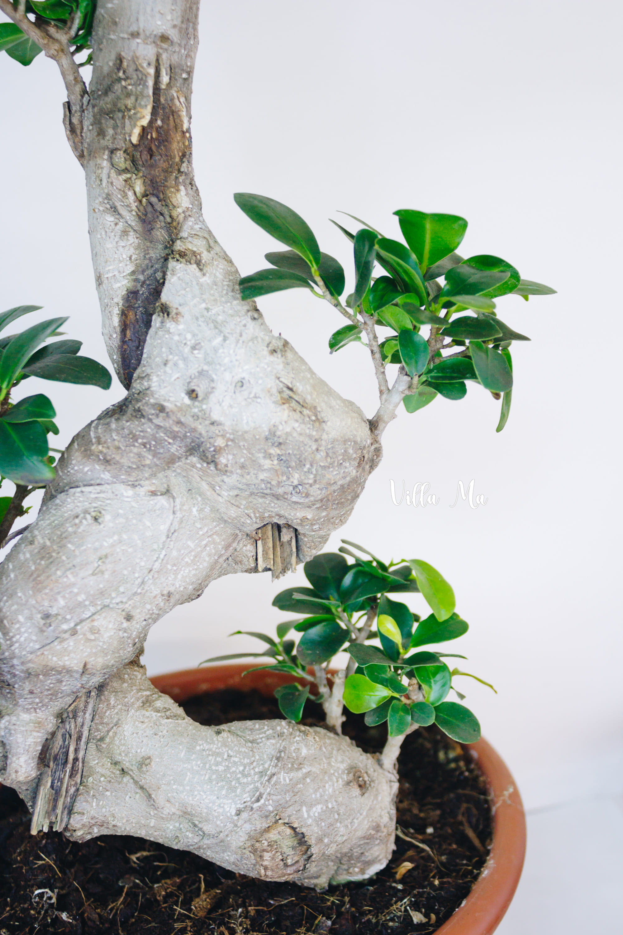 Фикус Гинсенг/ Женьшень/ характеризуется тем, что снизу его ствола имеется выраженное утолщение, сформированное из воздушных корней, которое со временем может принимать самые затейливые формы.