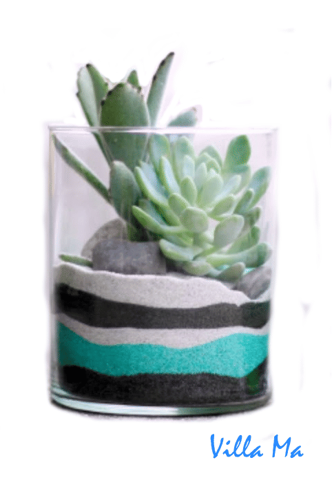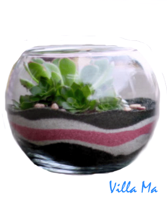 - флористическая композиция из живых суккулентов /кактусов в квадратной или круглой вазе 15см с декоративным цветным кварцевым песком.