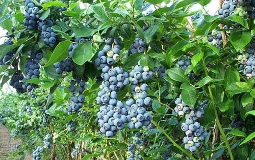 Нуи (Nui) Раскидистый куст высотой 1,2–1,8 м. Время созревания - со второй декады июля. Урожай 5–6 кг с куста. Один из наиболее крупноплодных сортов голубики. Плоды очень большие (до 3,5 г, 21 мм в диаметре), немного плоские, формируются в виде пятиугольной формы благодаря вызреванию в тугих гроздях (кистях). Кисти длинные, напоминают гроздья винограда. Ягоды имеют очень хороший кисловатый вкус и хорошую способность к хранению и транспортировке. Мякоть очень плотная, «хрустящая». Охлажденная ягода сохраняется по меньшей мере 2-3 недели. Реализуется в основном в свежем виде. Сорт теплолюбив, не требует длительного периода покоя и поэтому является ведущим для парниковой культуры. Из недостатков следует отметить слишком крупные листья и густой куст и, как результат, медленное обсыхание кустов после дождя.