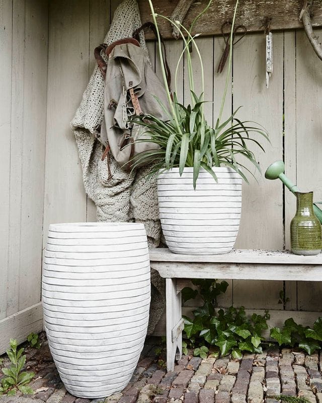 Горшок Инге с подготовкой к дренажному отверстию подходит для использования на улице и дома.