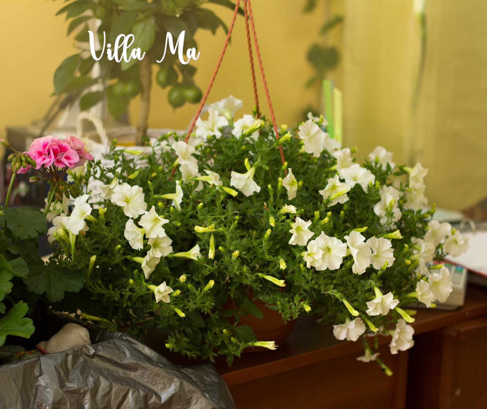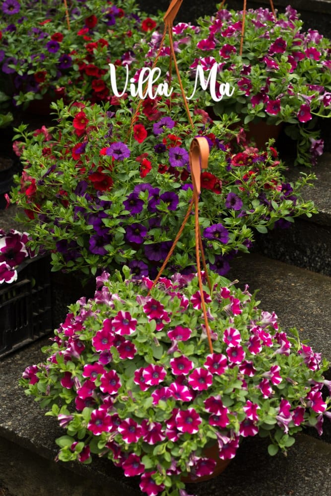 В кашпо могут присутствовать другие мелкоцветковые представители гибридов петунии, такие как минитуния, лаллитуния, миллифлора, супертуния, тумбелина, кончита, фортуния, мультифлора и др.