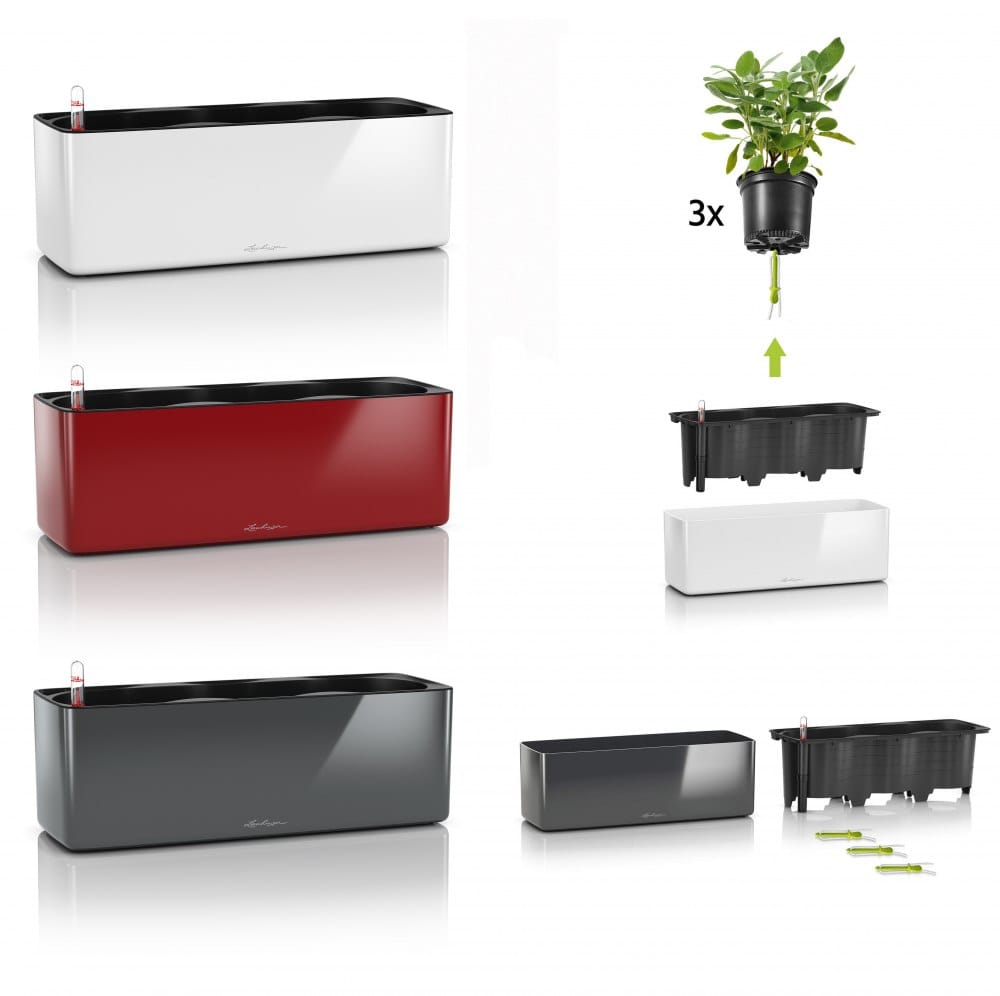 Кашпо-ящик Glossy Triple привносит современный дизайн в любой интерьер. Кашпо с высококачественными лакированными поверхностями притягивают взгляд и вместе с растениями являются элегантным предметом интерьера. Яркие кашпо LECHUZA ‒ это не только модный, но и технологичный тренд. Система автополива надежно заботится о снабжении растений водой и удобрениями.