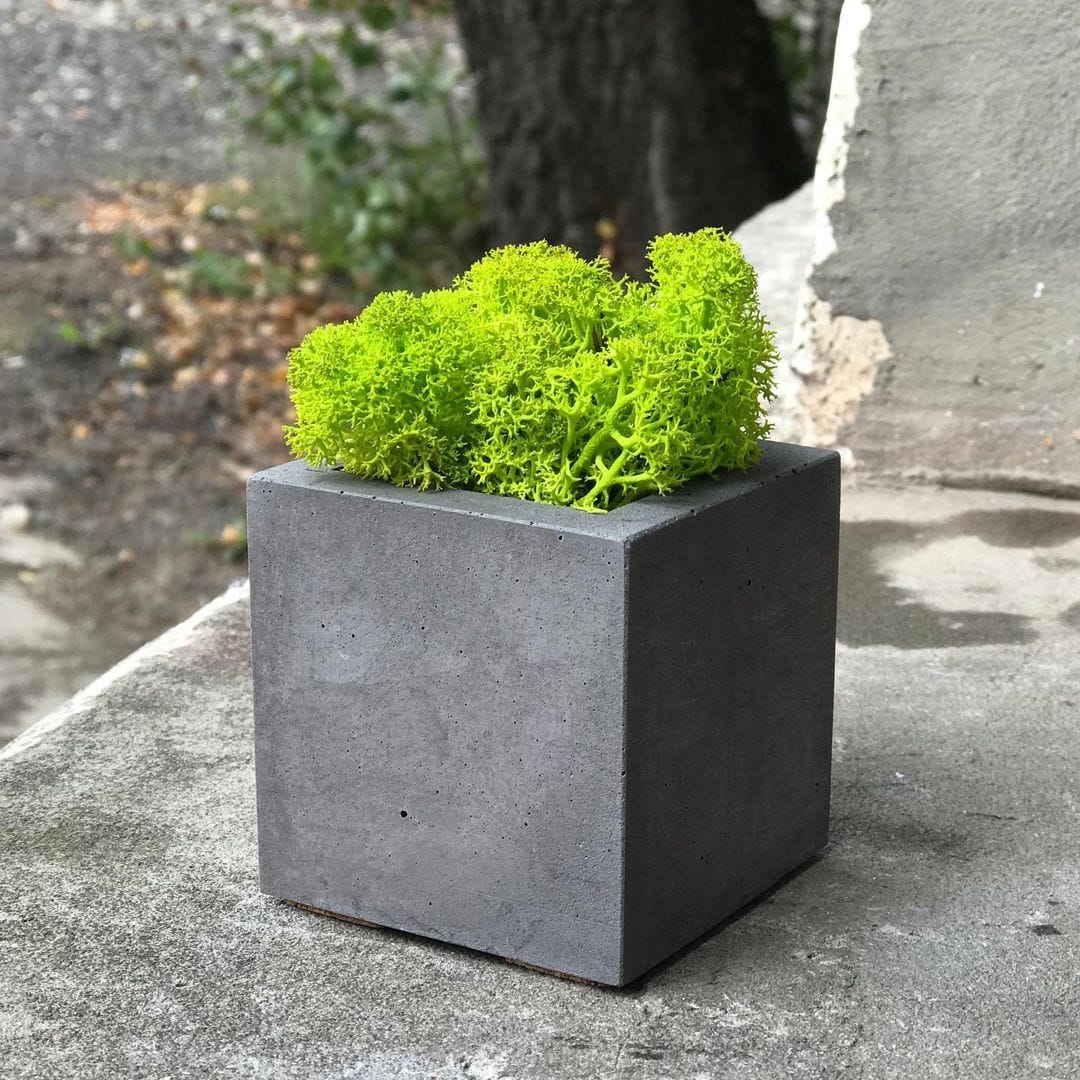 Кашпо Кубик бетон - современное кашпо из бетона ручной работы для растений, для украшения интерьера, для композиций, для организации пространства на рабочем месте около компьютера.