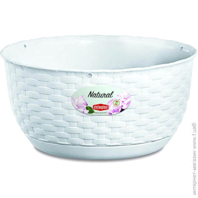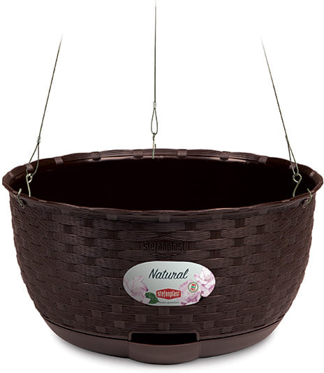 Кашпо подвесное Циотола - подвесное круглое кашпо из серии Натурал (пластик под Ротанг) с автополивом, резервуаром для лишней воды.