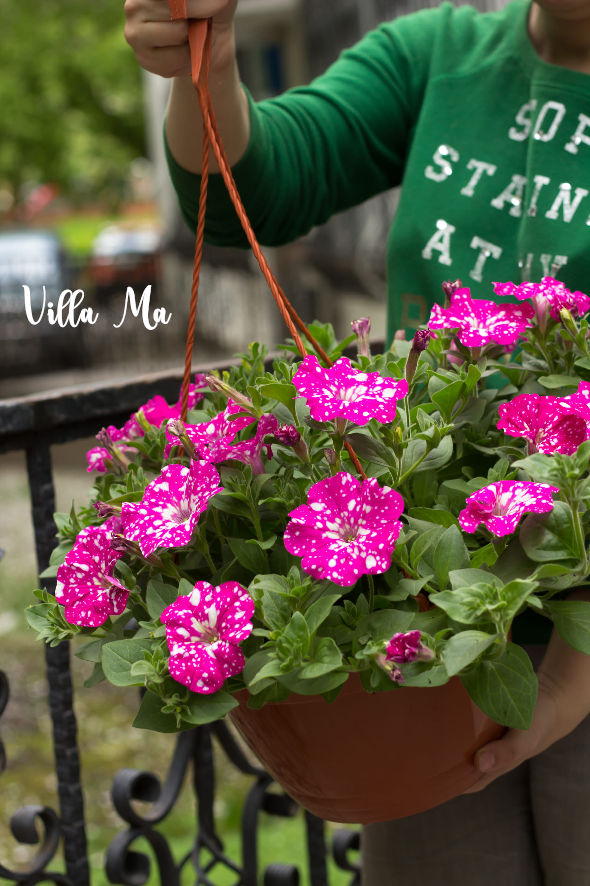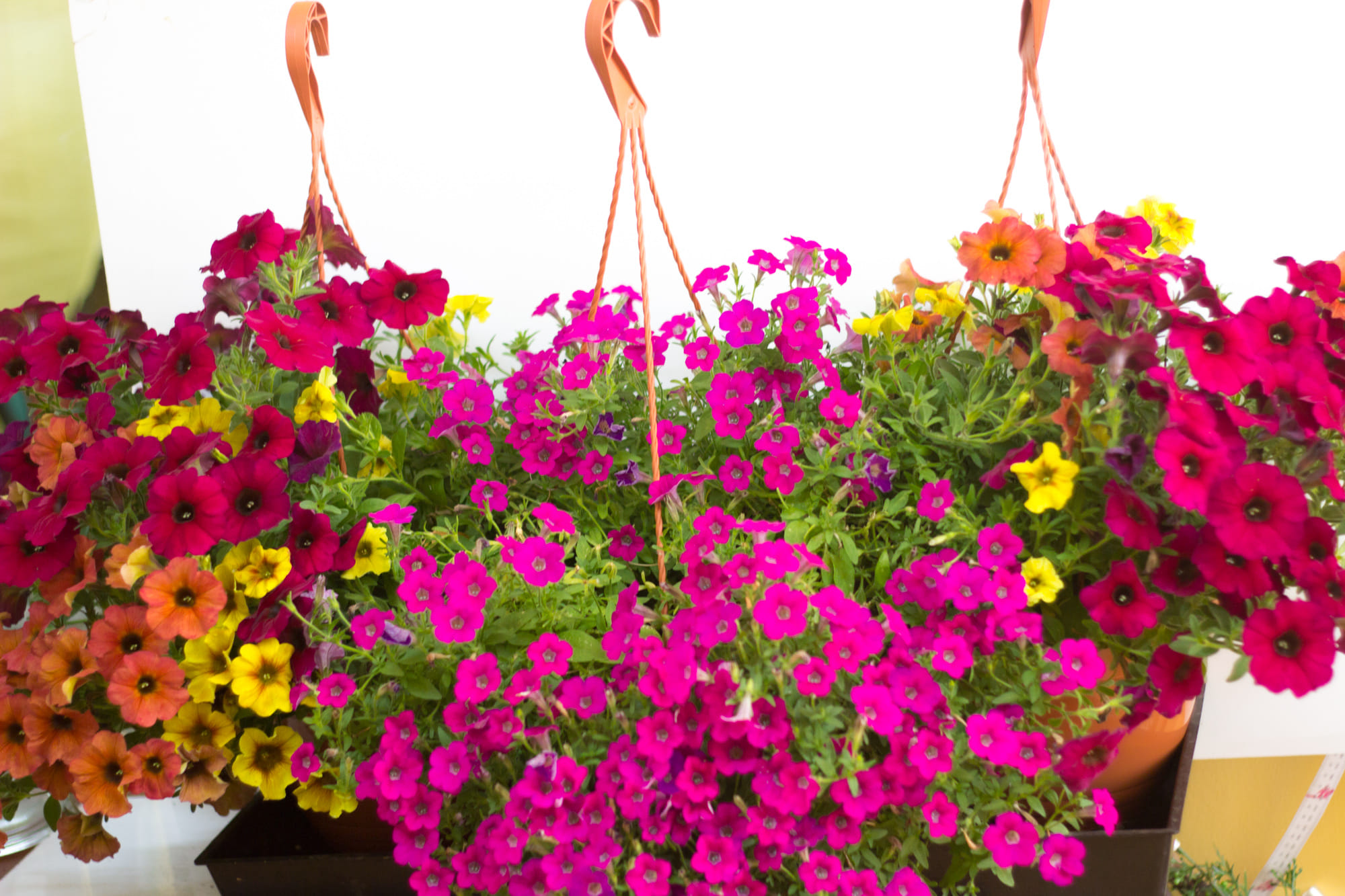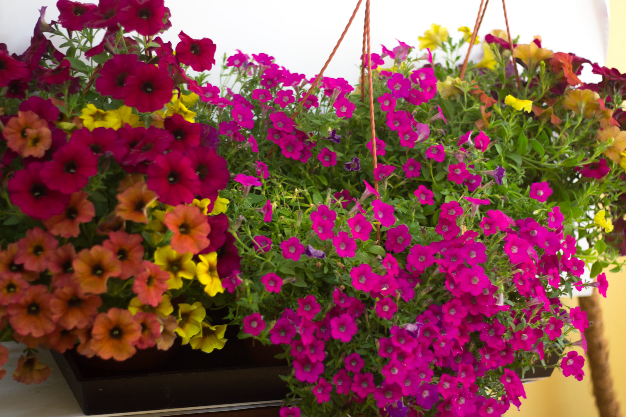 Сурфиния гибридная в подвесном кашпо для озеленения