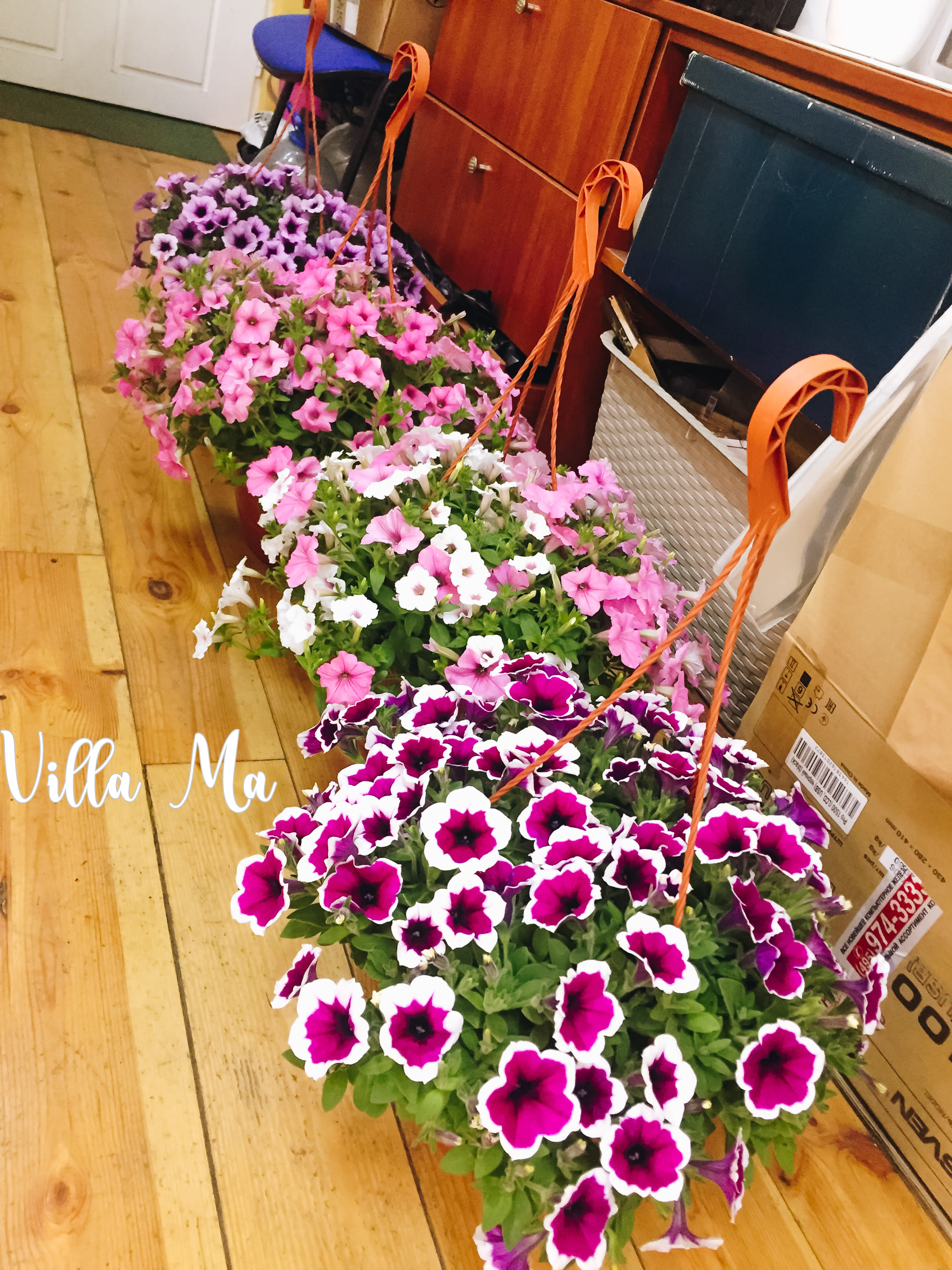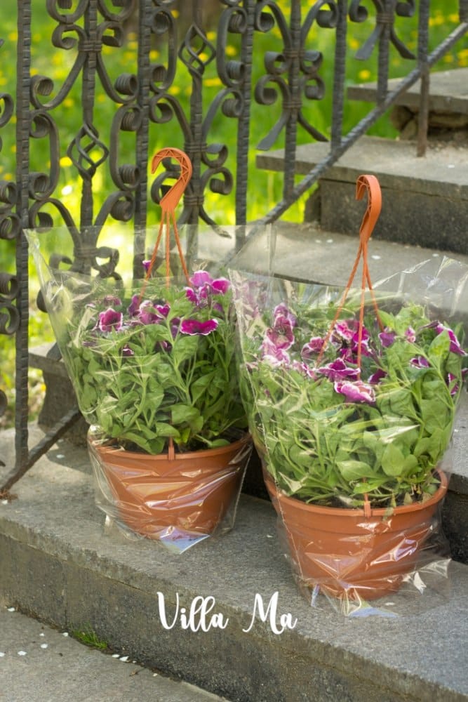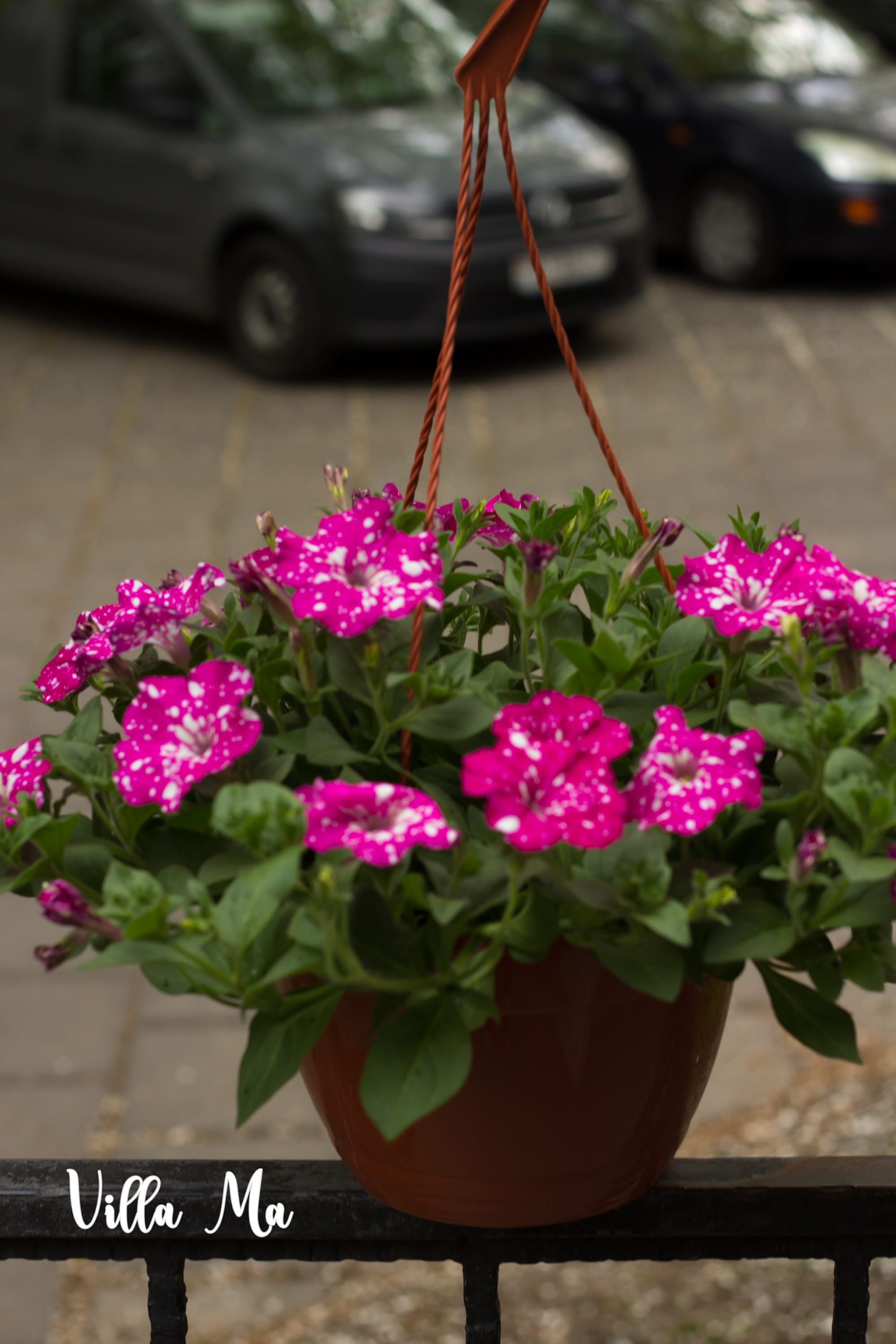 Сурфиния гибридная в подвесном кашпо для озеленения