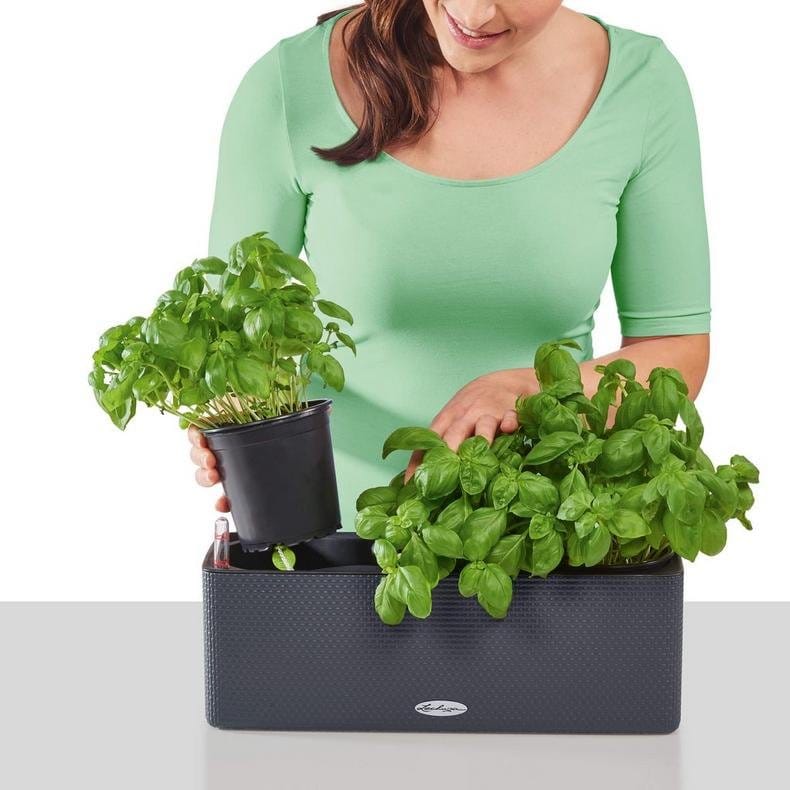 Кашпо ящик Куб КолорТрипл lechuza рассчитан не для пересадки, а для вставки 3х горшков с растениями, например, цветов или пряных трав.