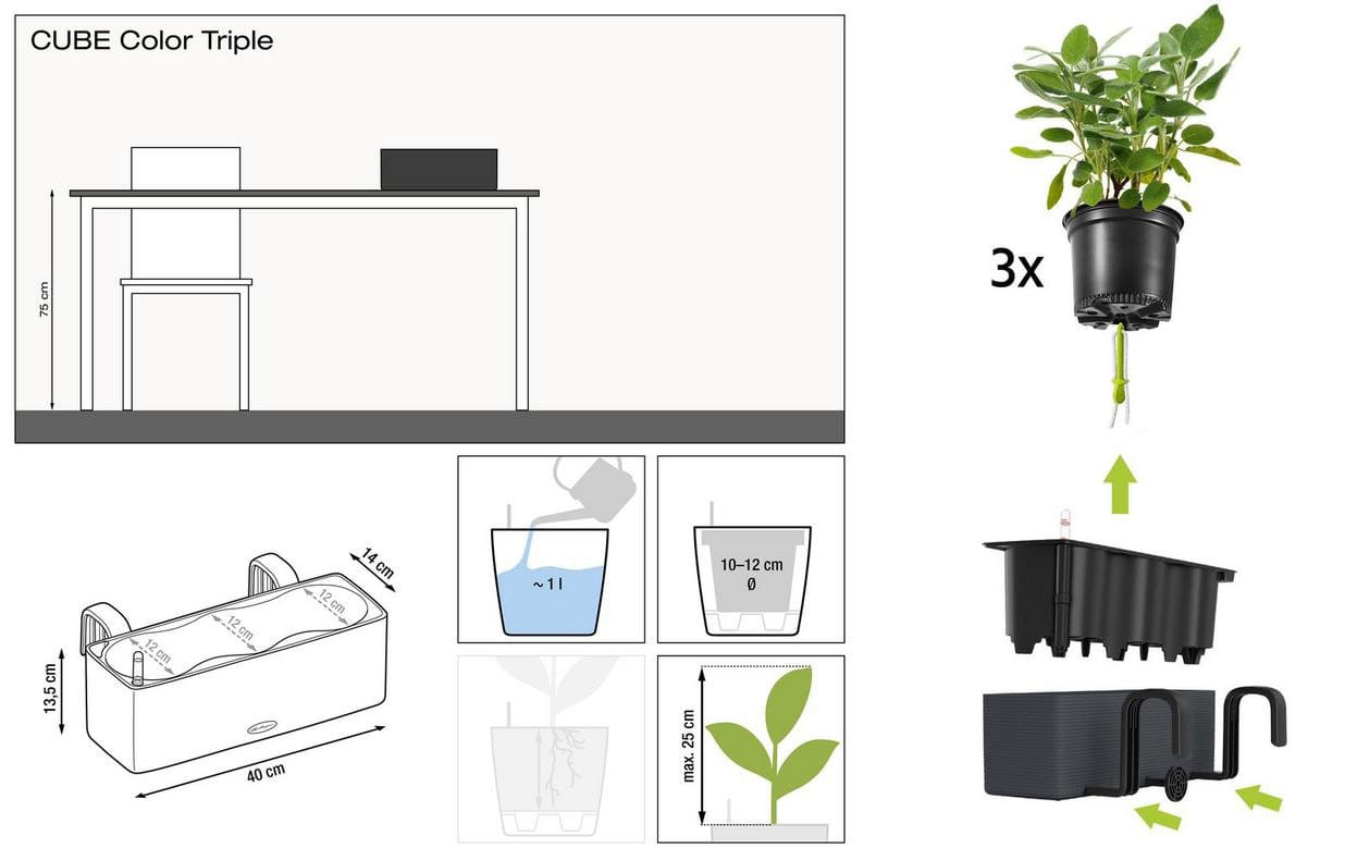 CUBE Color Triple идеально подходит для всех стандартных горшков с травами диаметр 10-12 см