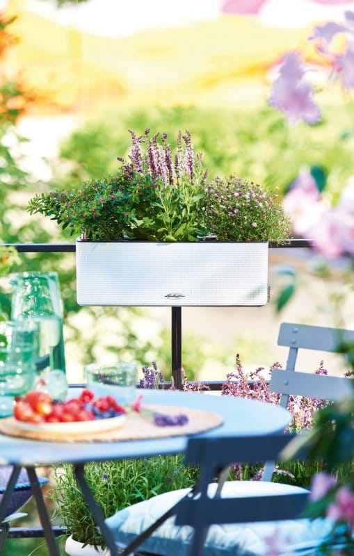 Емкость для воды в кашпо питает корни трав, как в природе.