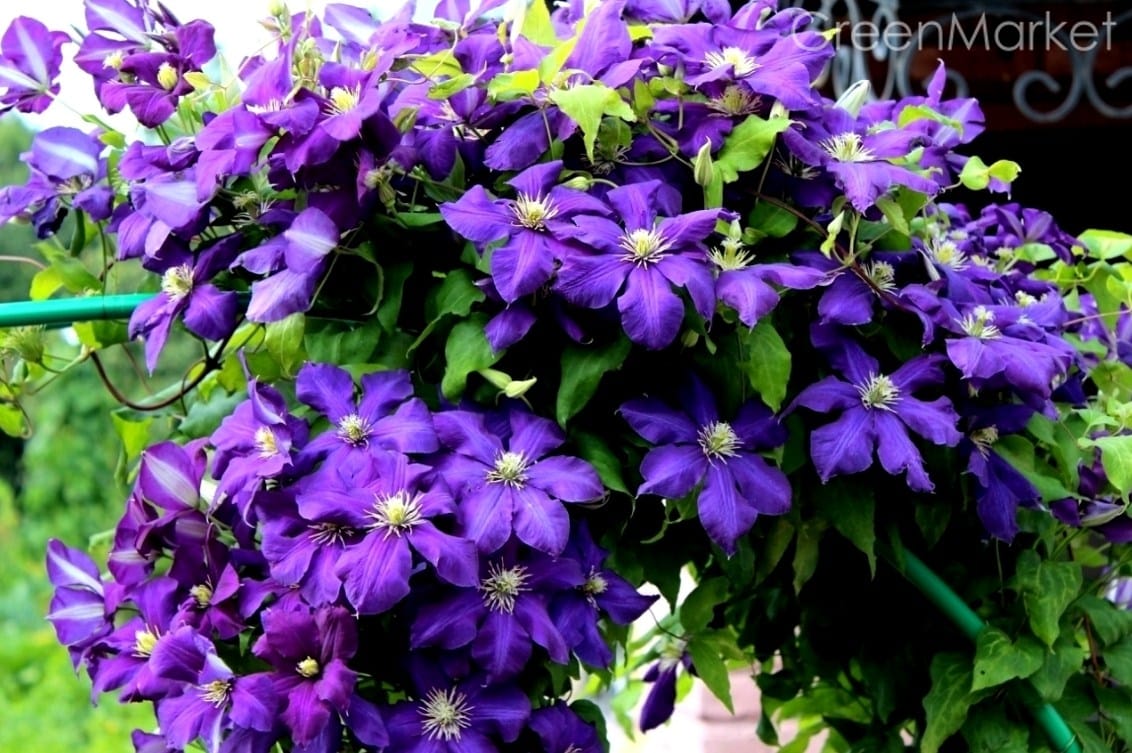 Преимущества сорта Клематис Синее Пламя: не прихотливый, повторноцветущий, красивый оттенок, быстрорастущий.