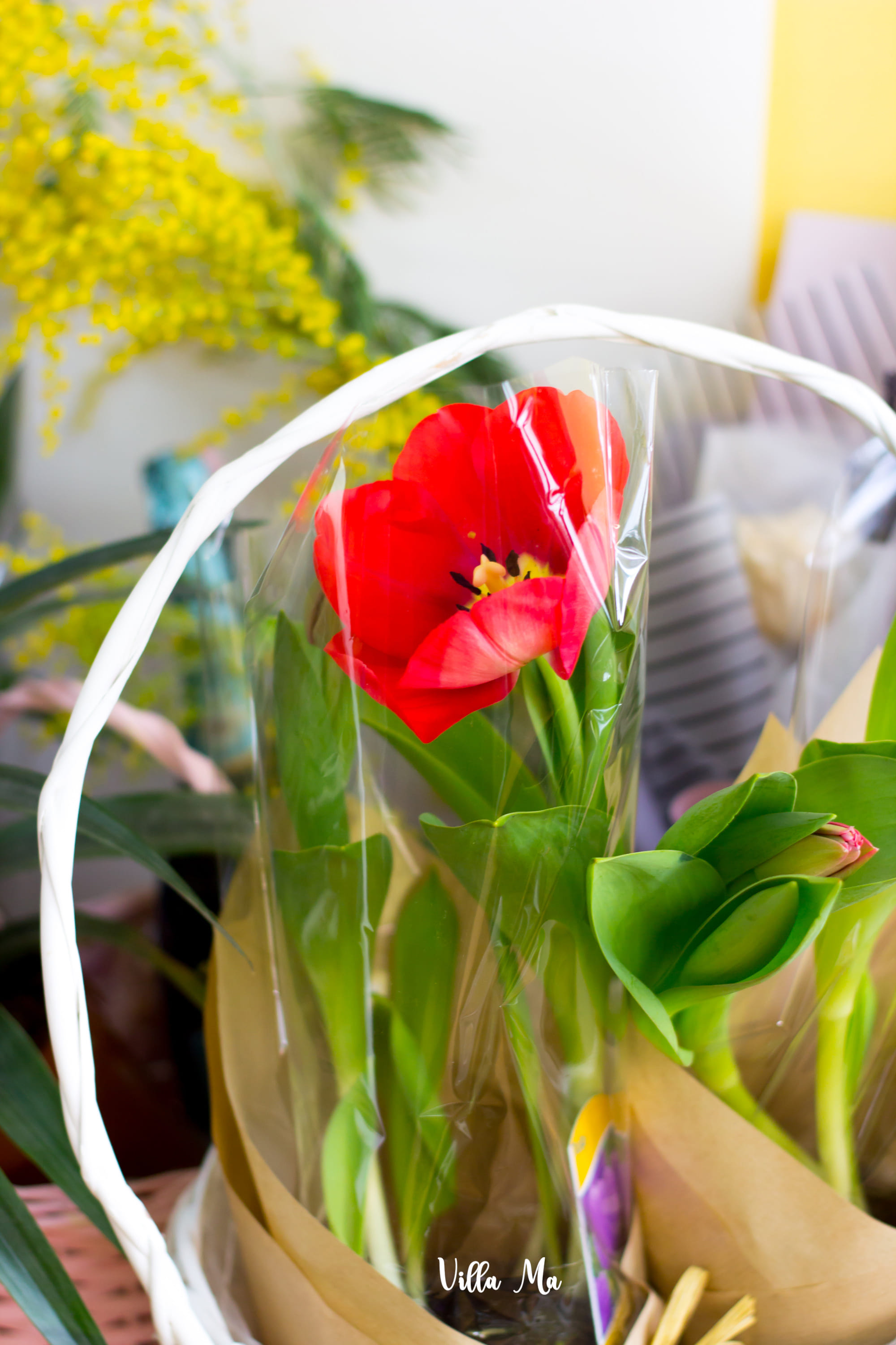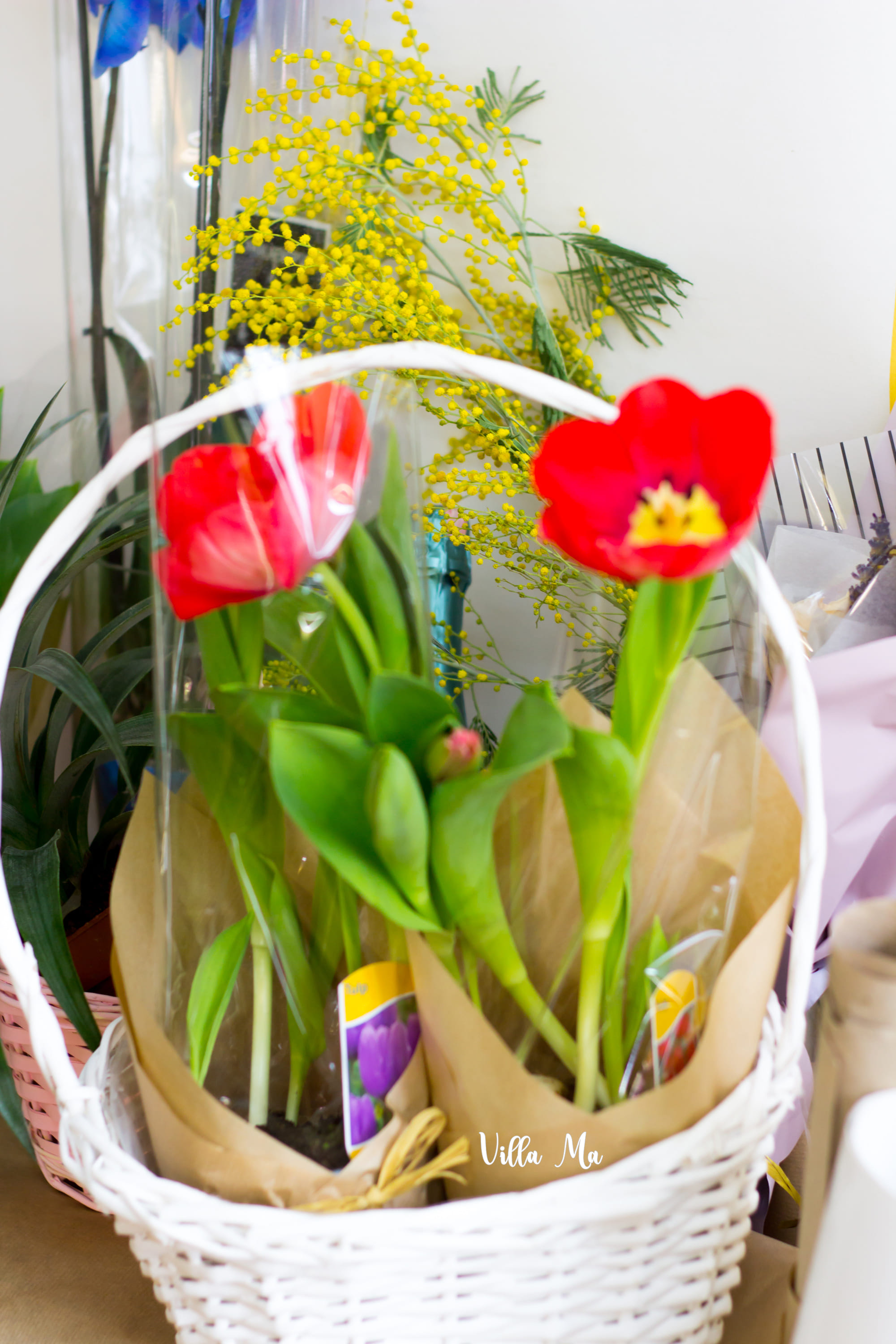 Корзина с тюльпанами