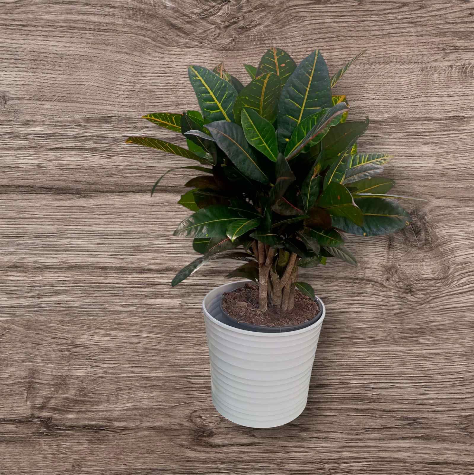 Кодиум кротон Петра /Codiaeum Petra/ популярное комнатное яркое растение в горшке.