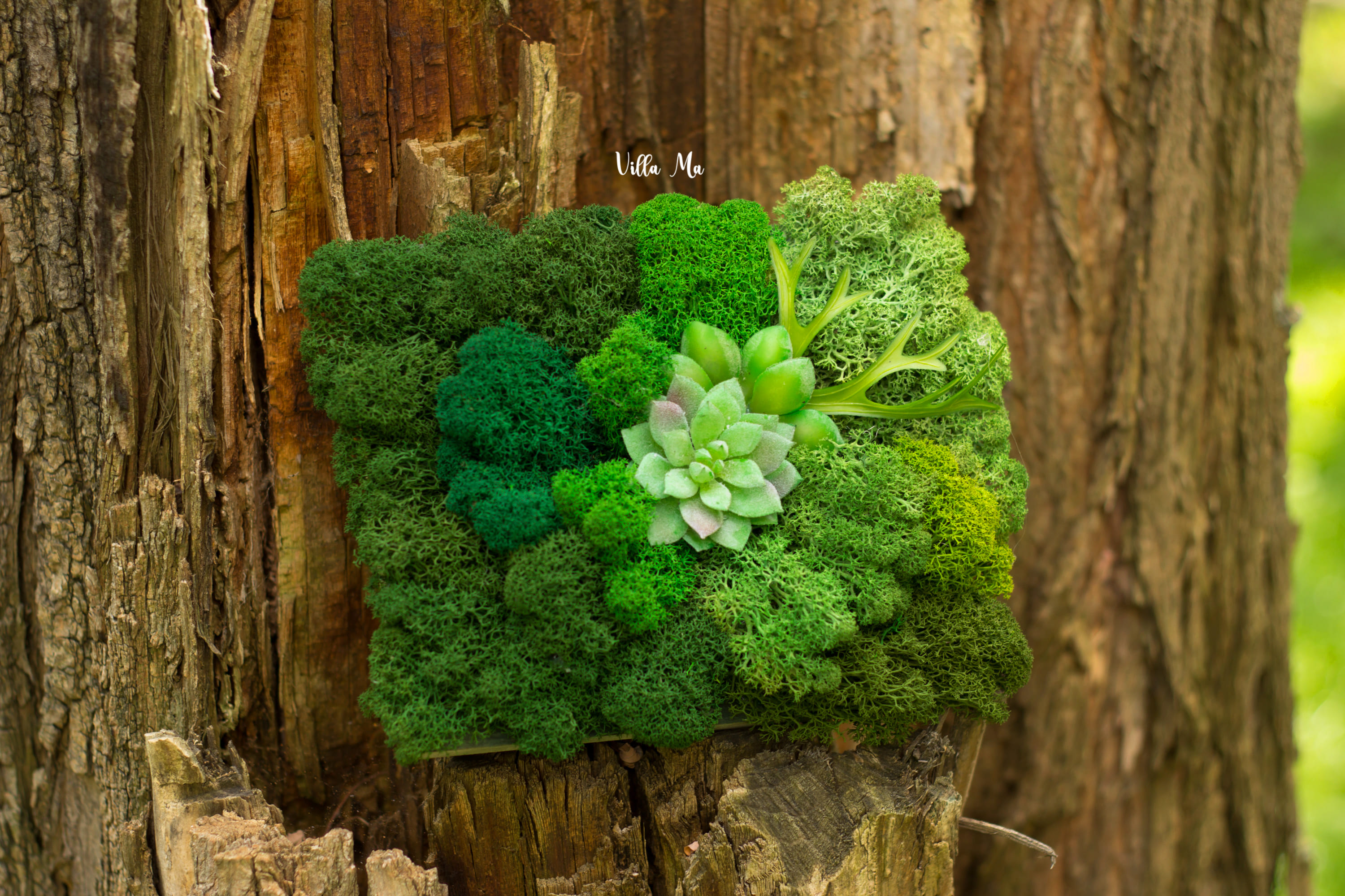 - маленькие работы разных размеров из стабилизированного натурального вечного мха, на фанере или деревянной доске внесут яркую зелёную нотку живой природы в помещение.