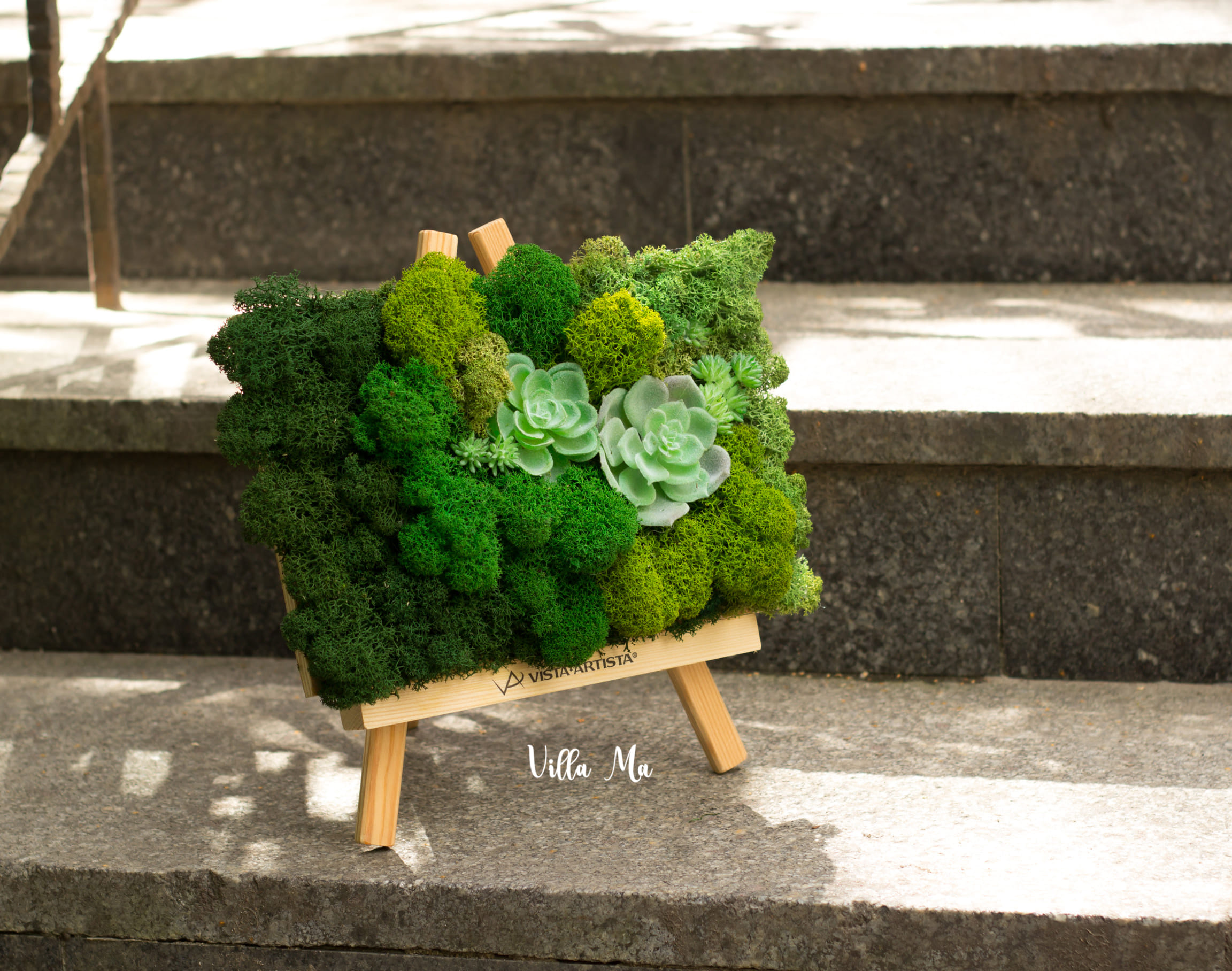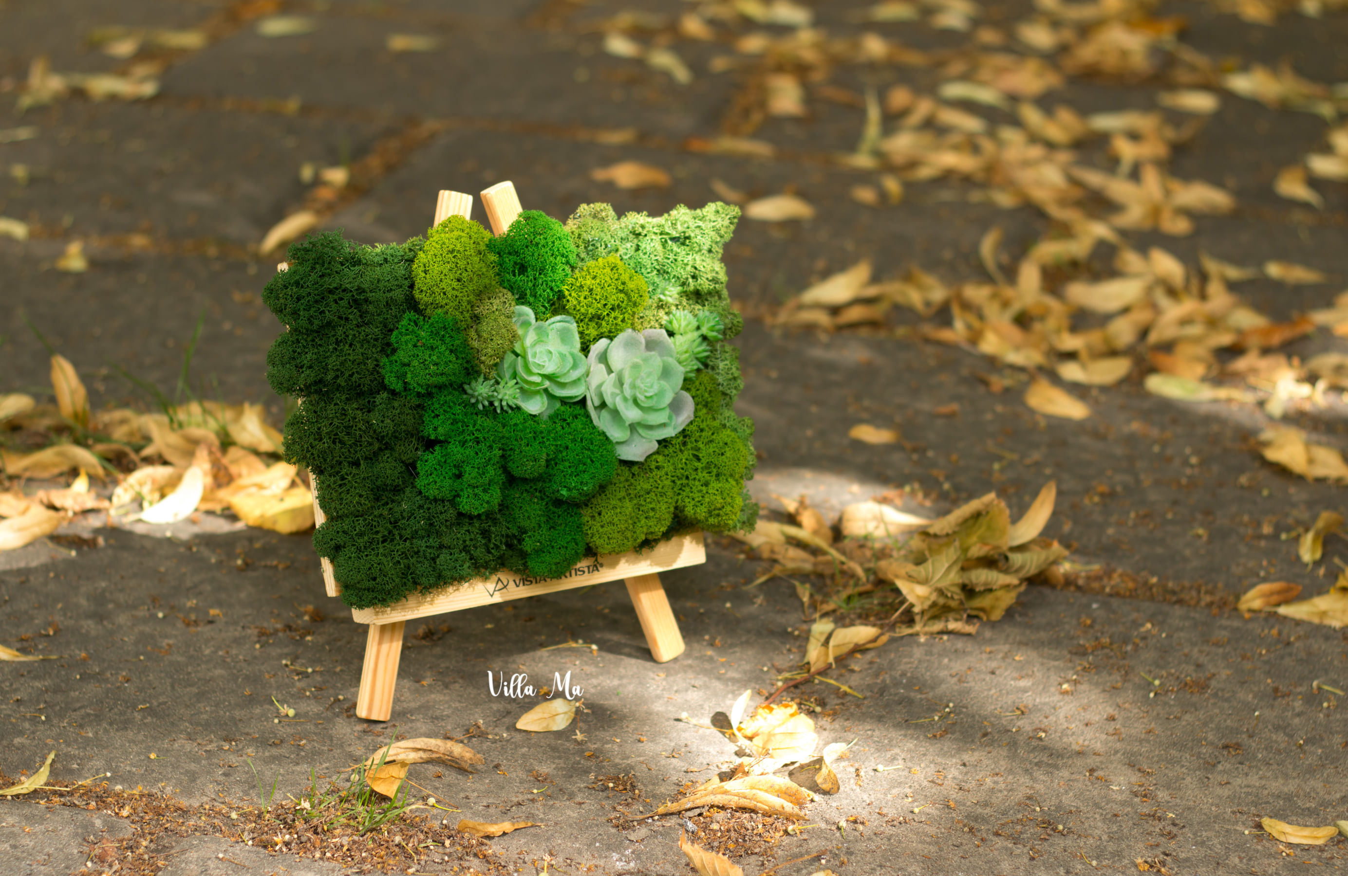 - маленькие работы разных размеров из стабилизированного натурального вечного мха, на фанере или деревянной доске внесут яркую зелёную нотку живой природы в помещение.