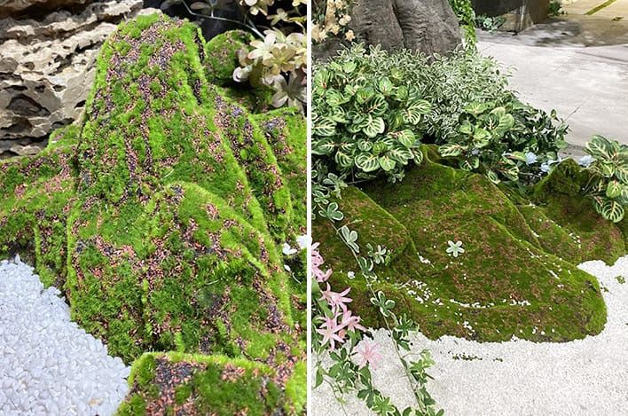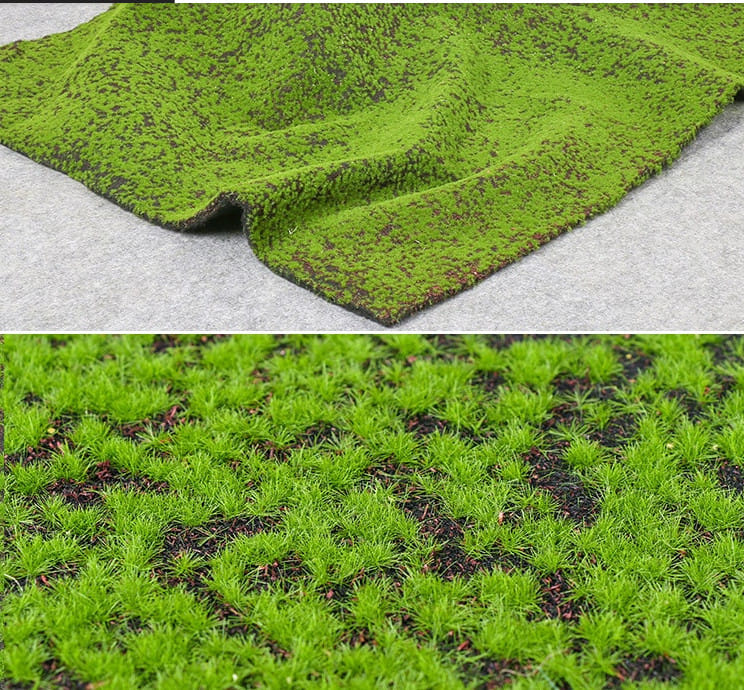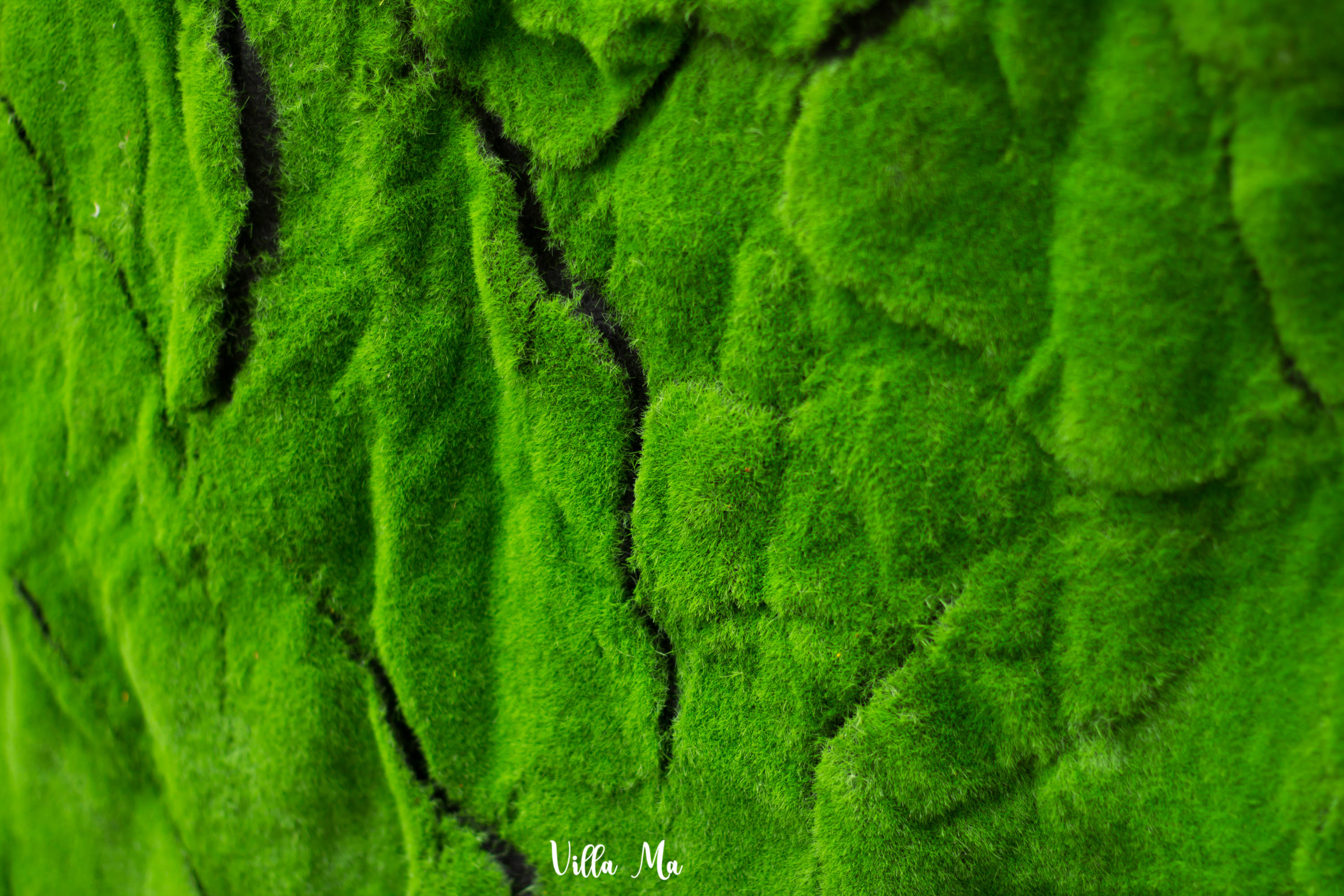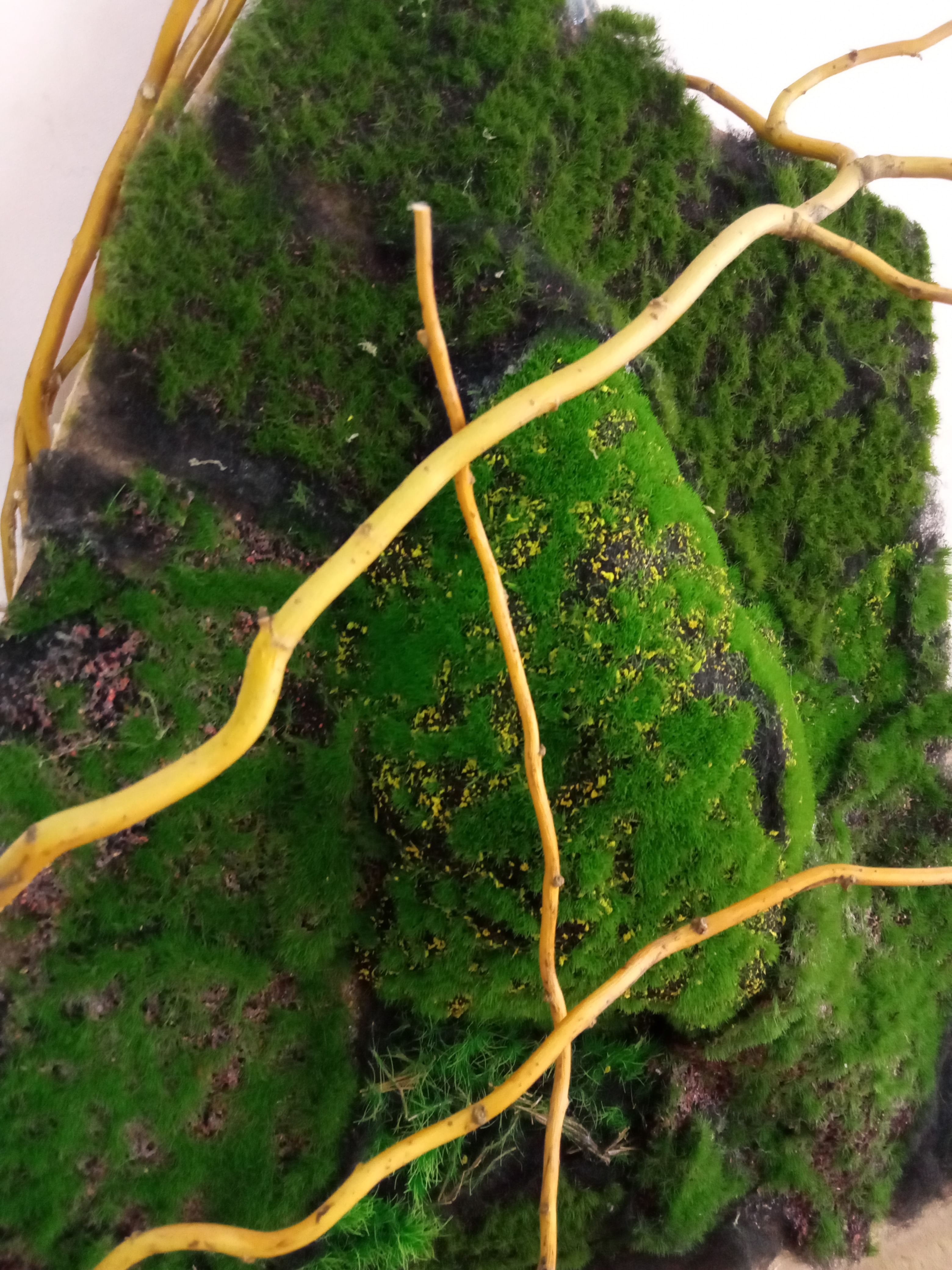 Мох используется как подложка для зелёных картин с растениями, или как самостоятельное панно, или драпировка для пола, стен, балок, оформления витрин, для дорамы и макетов.