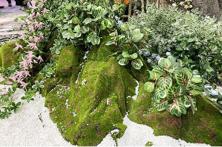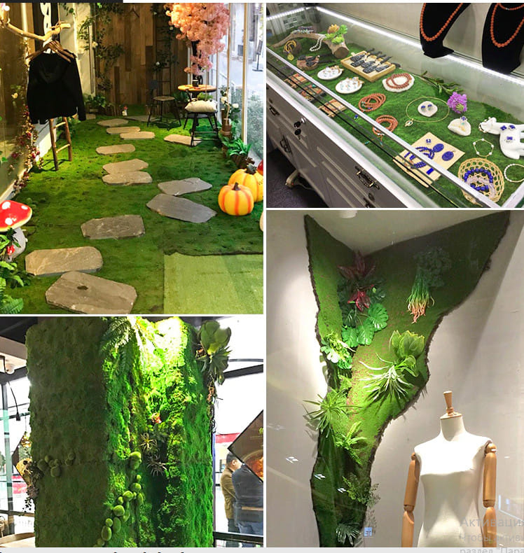 Искусственный мох и кочки - бюджетная альтернатива стабилизированному натуральному мху в декорах не жилых интерьеров.