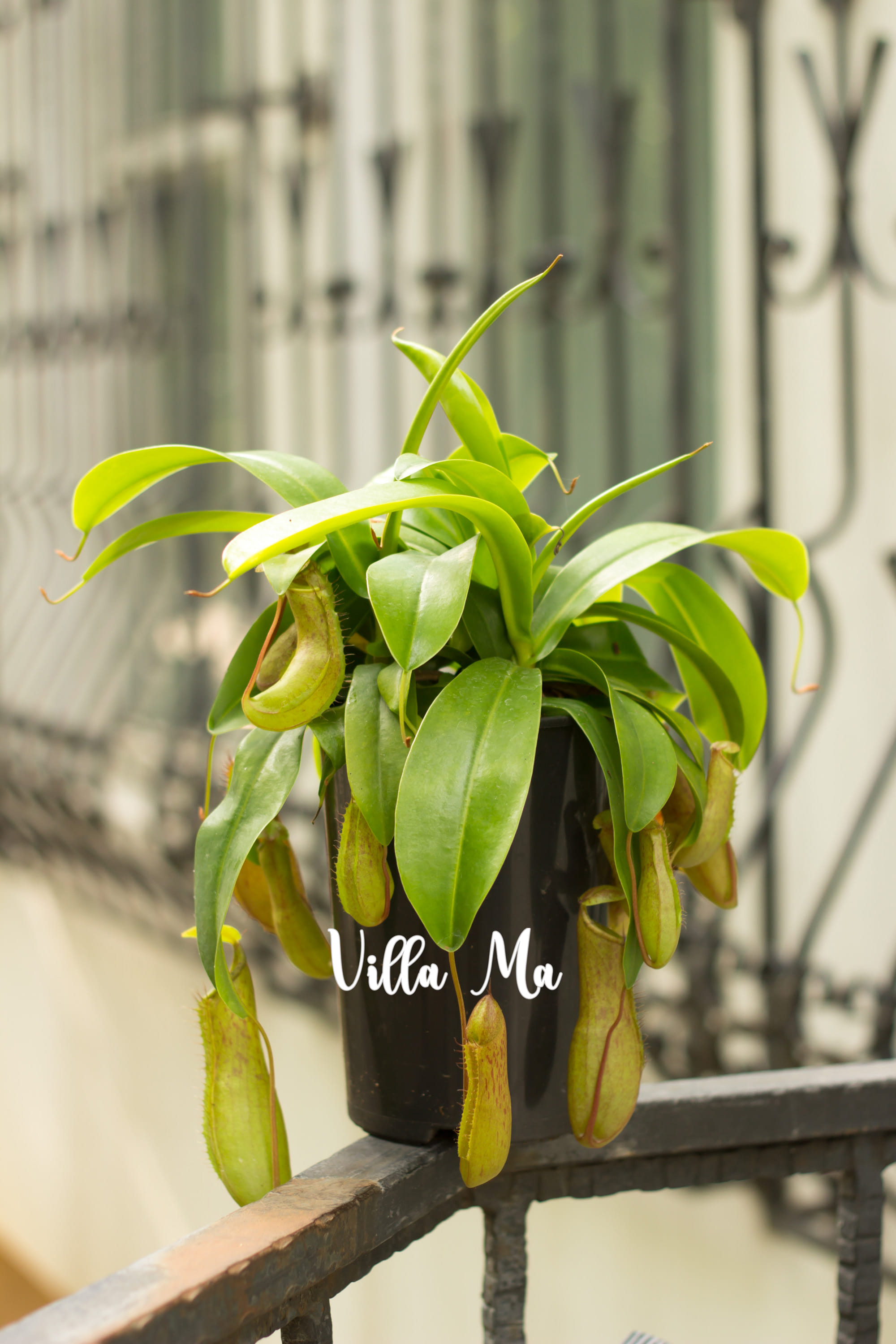 Непентес крылатый - хищное плотоядное растение в горшке, большой с ловушками кувшинчиками.