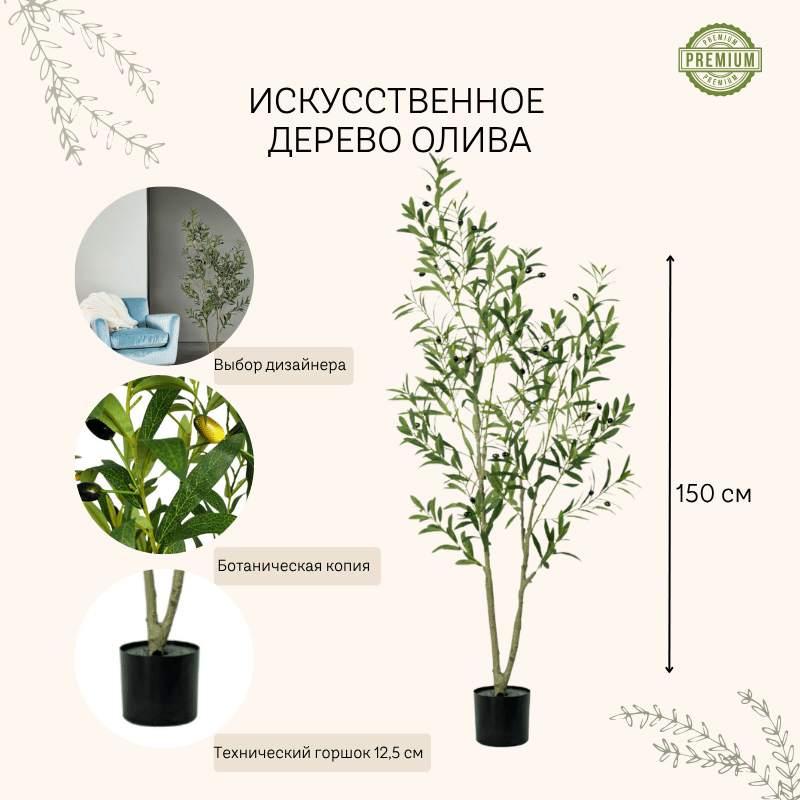 Олива европейская 150см искусственная из пластика с натуральным стволом,