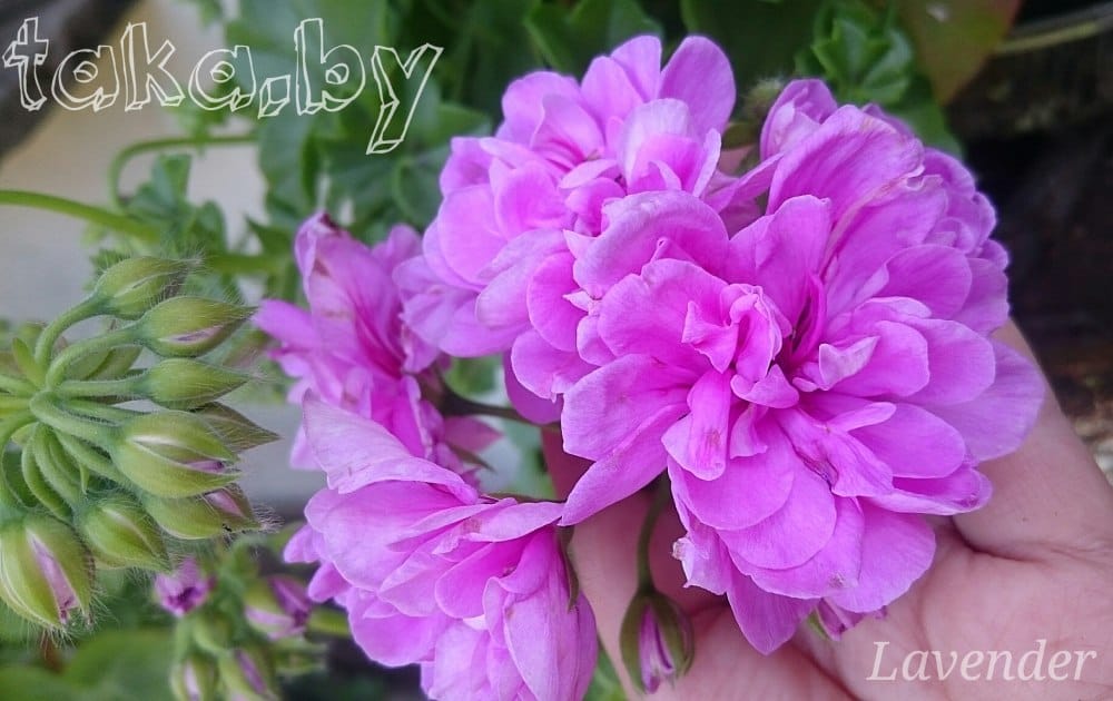 Описание сорта пеларгония Лавендер Плющелистная пеларгония стандартного размера сиреневого оттенка с крупными шапками махровых соцветий.