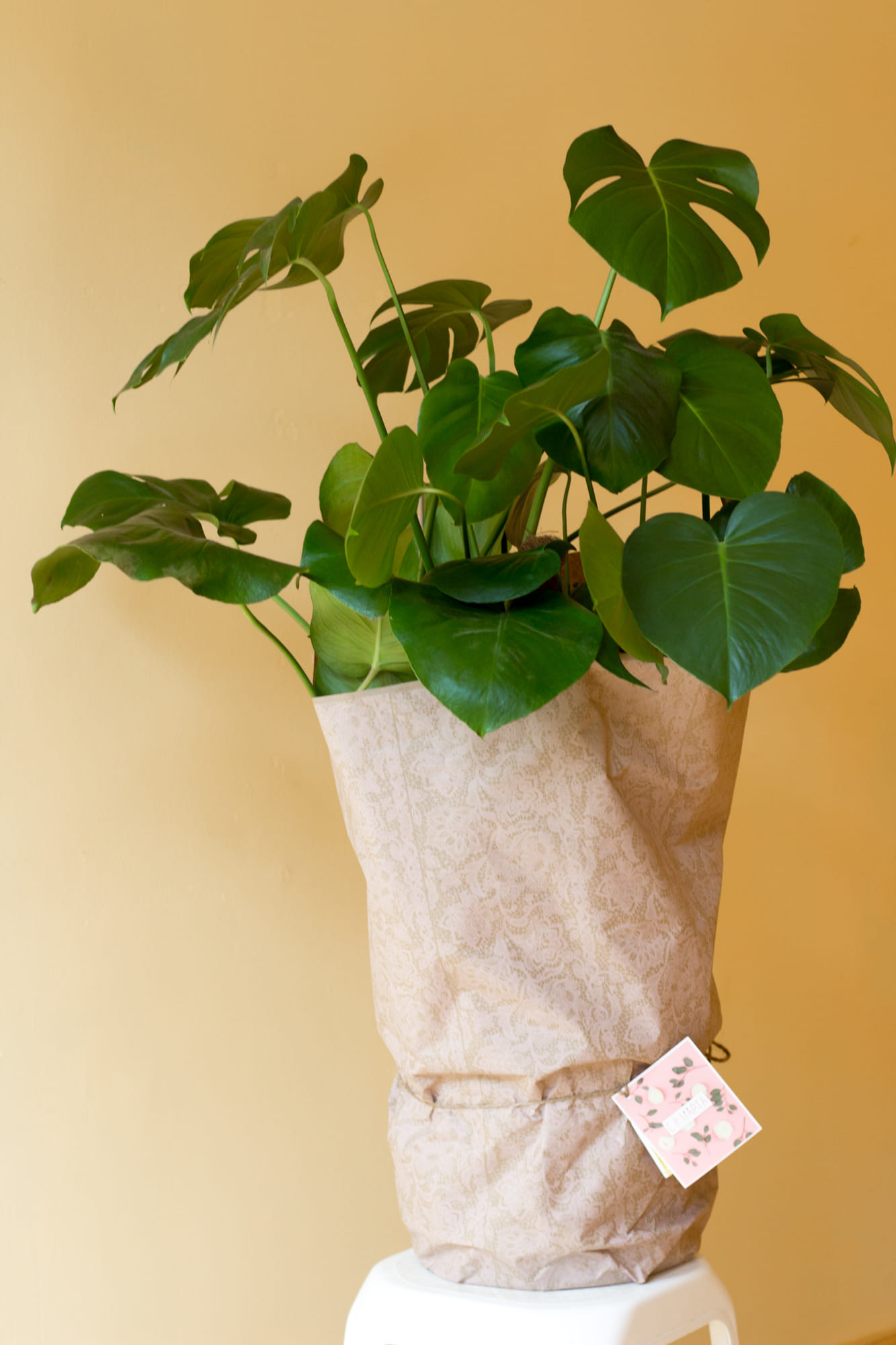 Подарочное оформление и упаковка больших горшечных растений: подарите свежесть, цвет и радость: живое растение в горшке в модной одёжке!