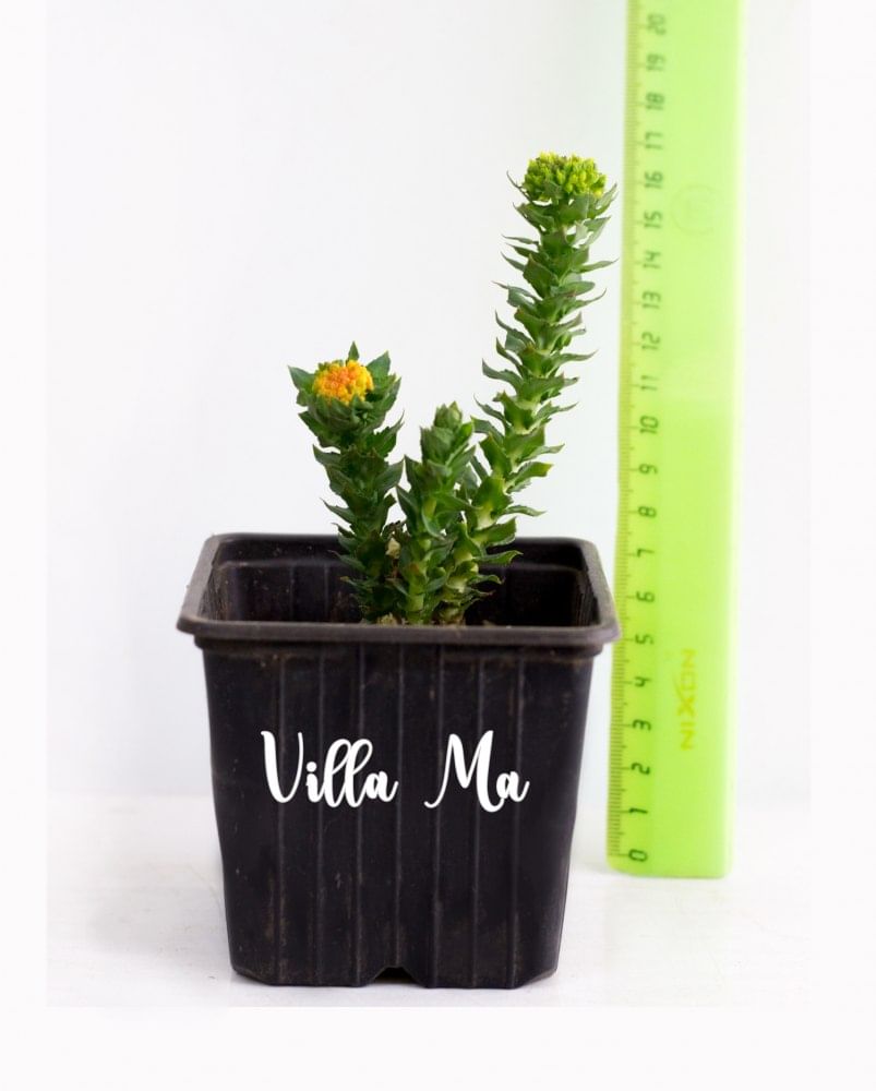 – низкорослое многолетнее растение (20-30 см высотой), похожее на очиток, с голубоватой листвой и мелкими цветками. Наземная часть отмирает во второй половине лета.