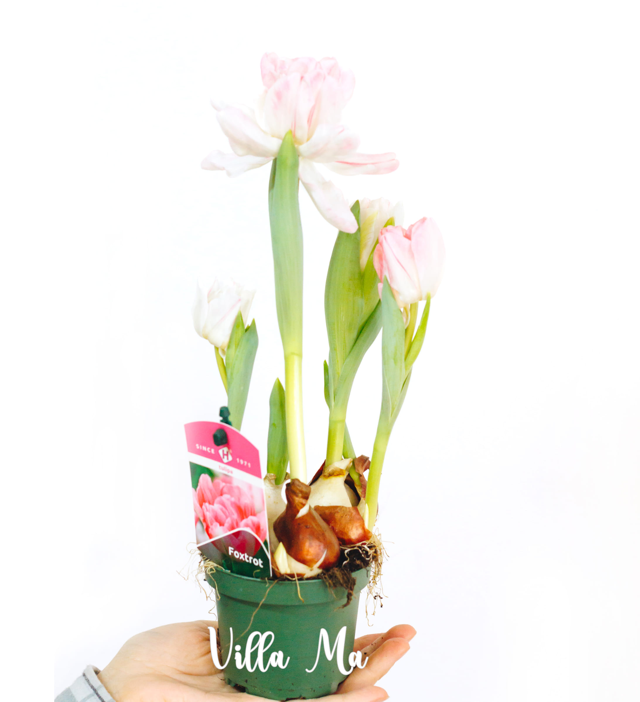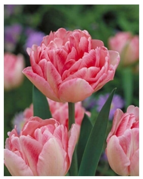 Живой букет из розовыз махровых тюльпанов 5шт.