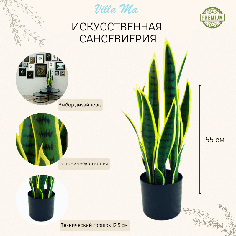 Реалистичная сансевиерия Лауренти из силикона оживит любое пространство.