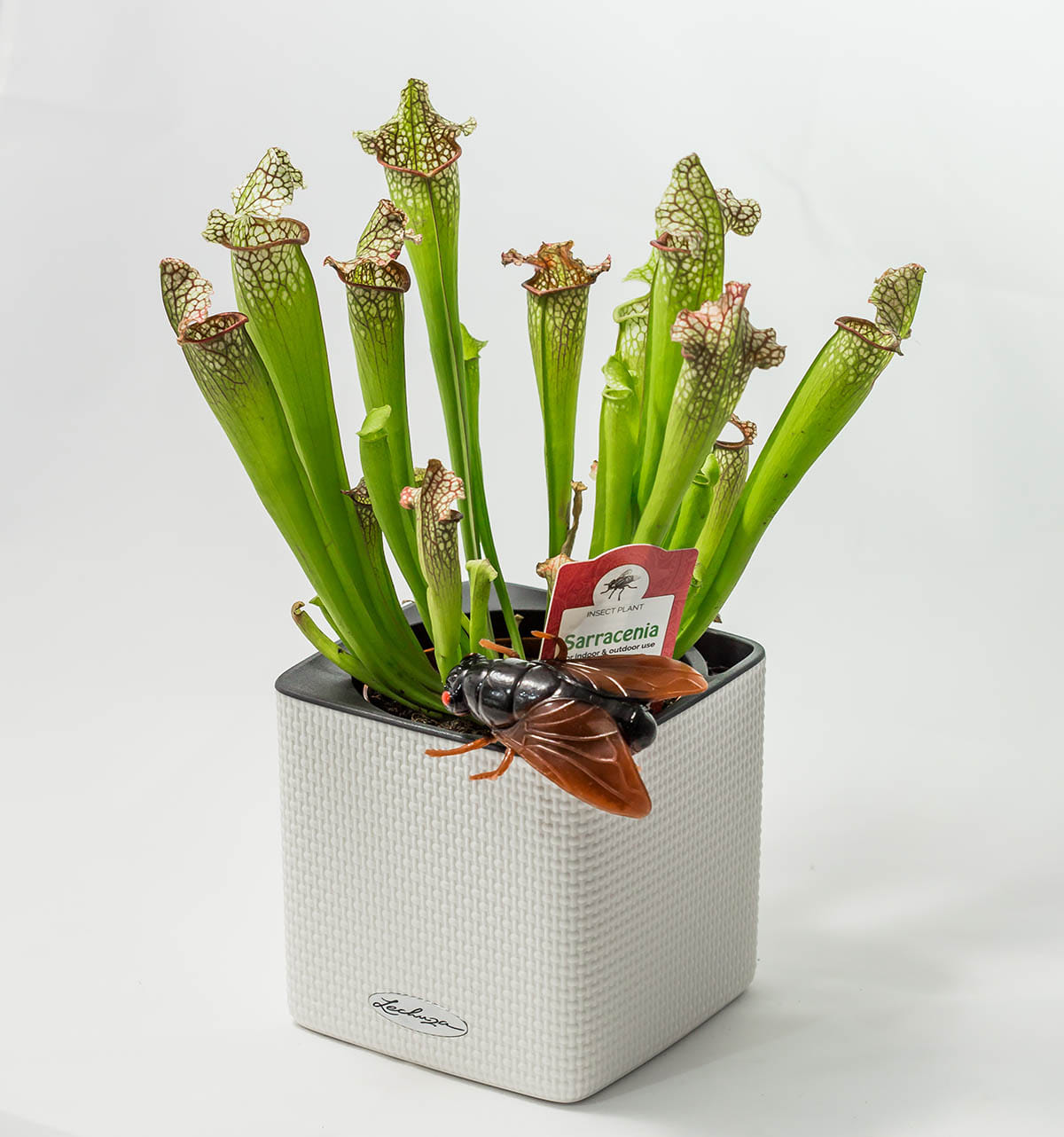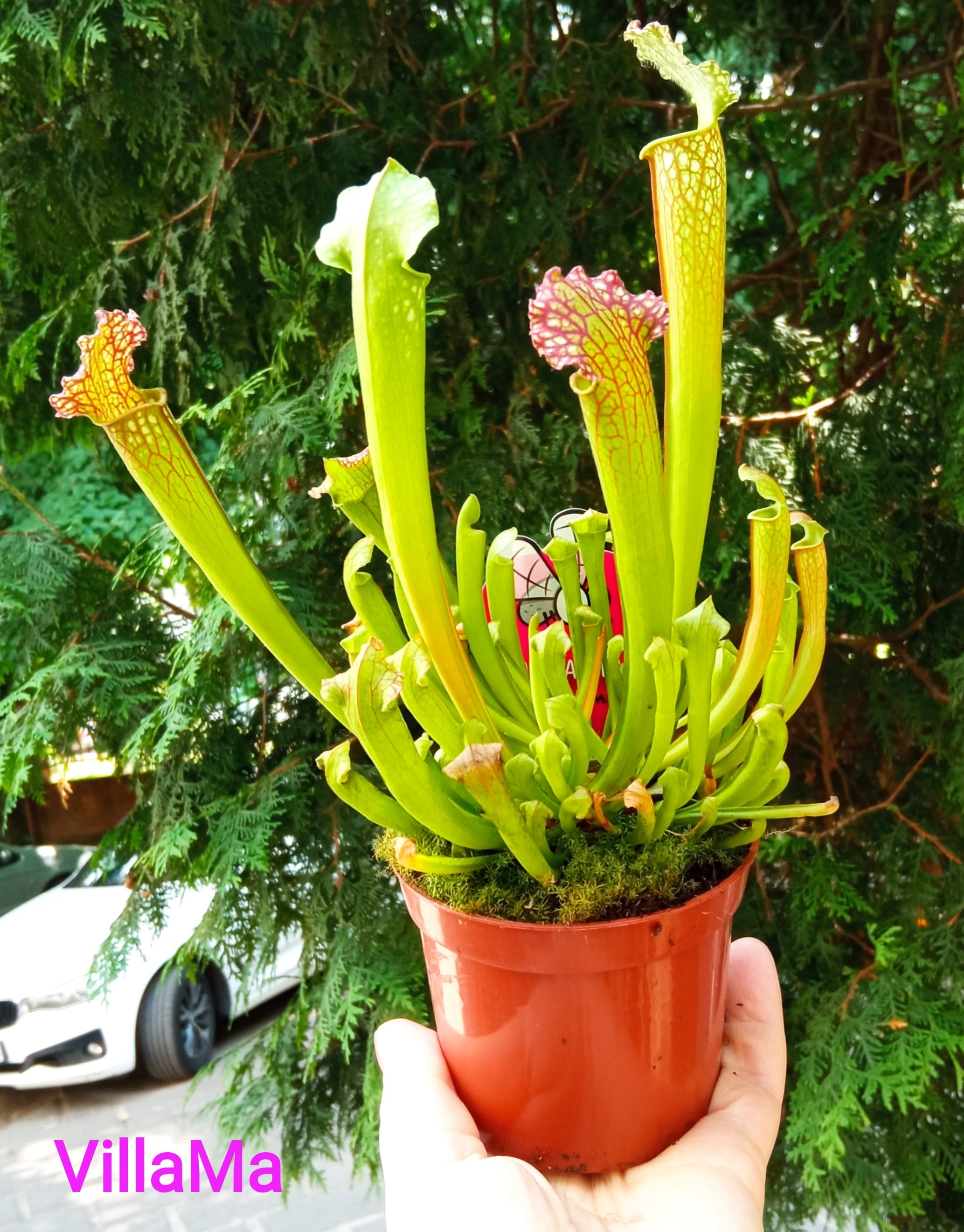 Саррацения (лат. Sarracenia) — хищное плотоядное растение в горшке, выращивается как комнатное растение. В продаже на VillaMa саррацении МИКС разных сортов, с короткими толстыми (с. пурпурная) и длинными ловушками, выбирайте по фото.