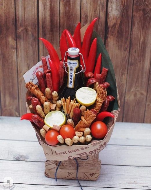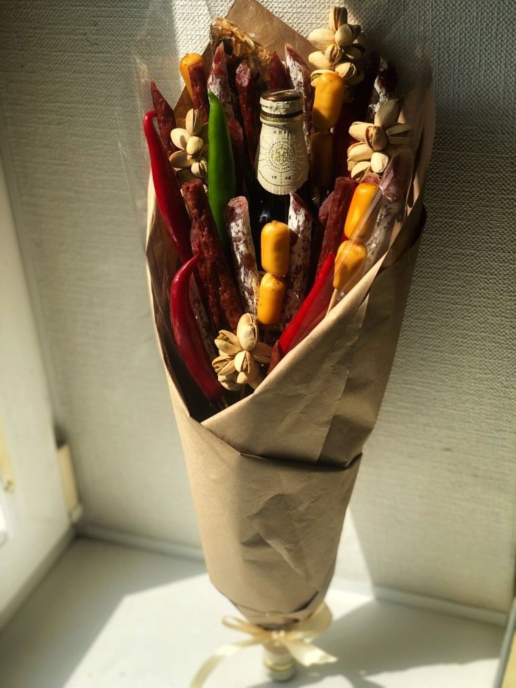 Заказывайте букет СЪЕДОБНЫЙ на любой случай: с нашей зеленью, с вашими продуктами, фруктами, конфетами, букет из сухофруктов.
