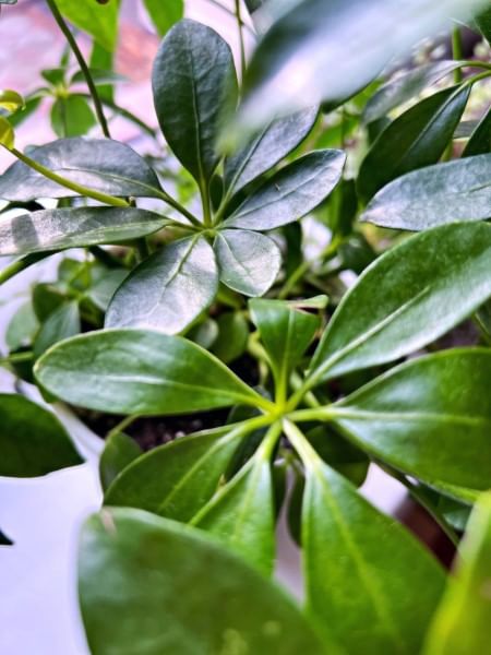 сорт шеффлера Green Star - средне- и большерослый, с красивой формой листа. Характеризуется хорошей скоростью роста в молодом возрасте. Поддается стрижке, формировкам, заплетению в косы. Очень красивое интерьерное растение, способное переносить не очень хорошо освещённые места.