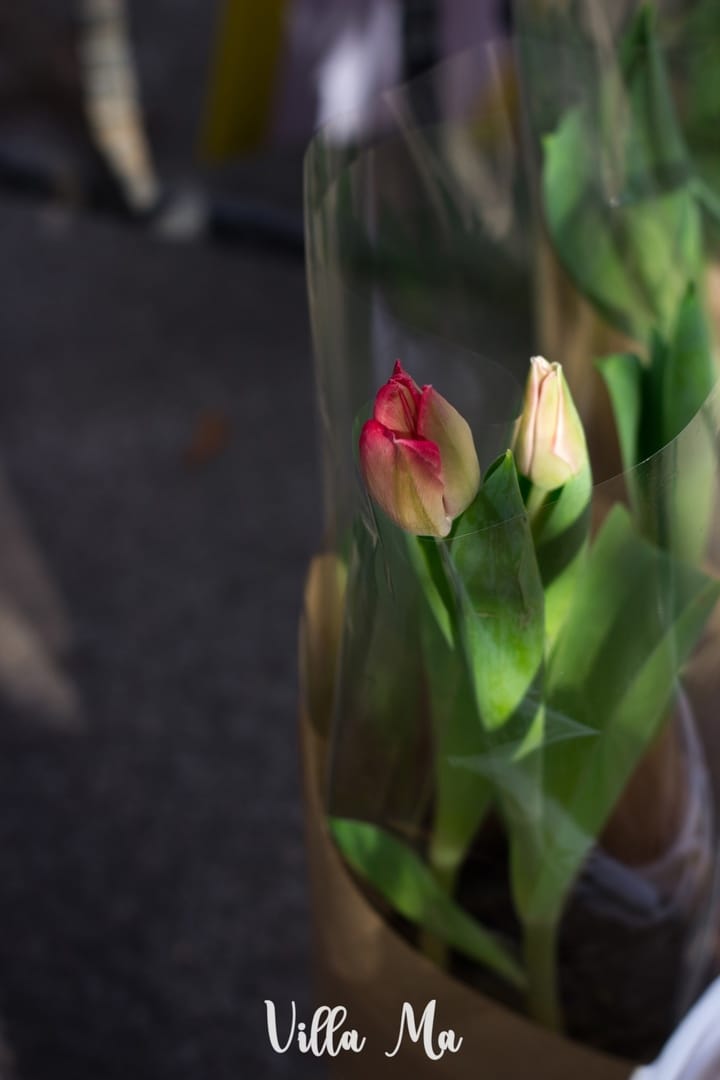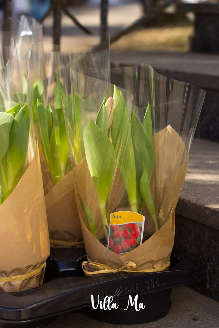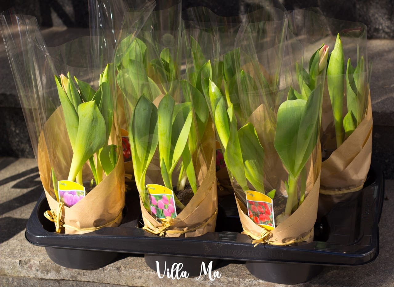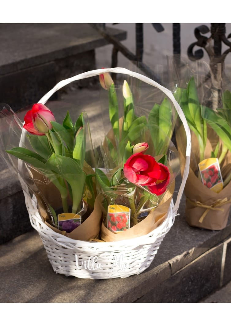 Это живые композиции из тюльпанов с крупными бутонами-бокалами разных расцветок, смотрите Параметры.