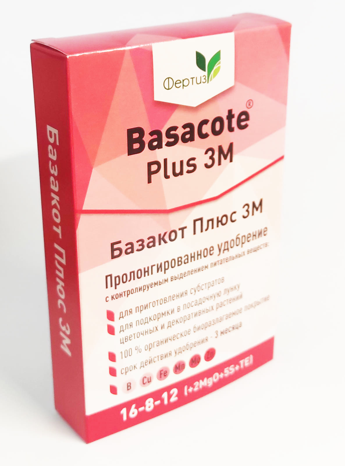 Состав удобрения Basacote Активные компоненты препарата Базакот находятся в хелатной форме, поэтому они легко усваиваются культурами. Главные ингредиенты: азот – 16%; оксид калия – 12%; оксид фосфора – 8%; сера – 5%; оксид магния – 2%.
