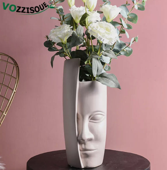 Скандинавская Минималистичная керамическая абстрактная ваза для цветов, искусственное лицо, настольные растения, цветочные горшки, черная ваза керамическая фигурная.