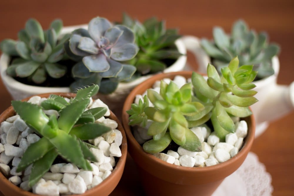 В наличии разные эхиверии в пластиковых и каменных горшках.