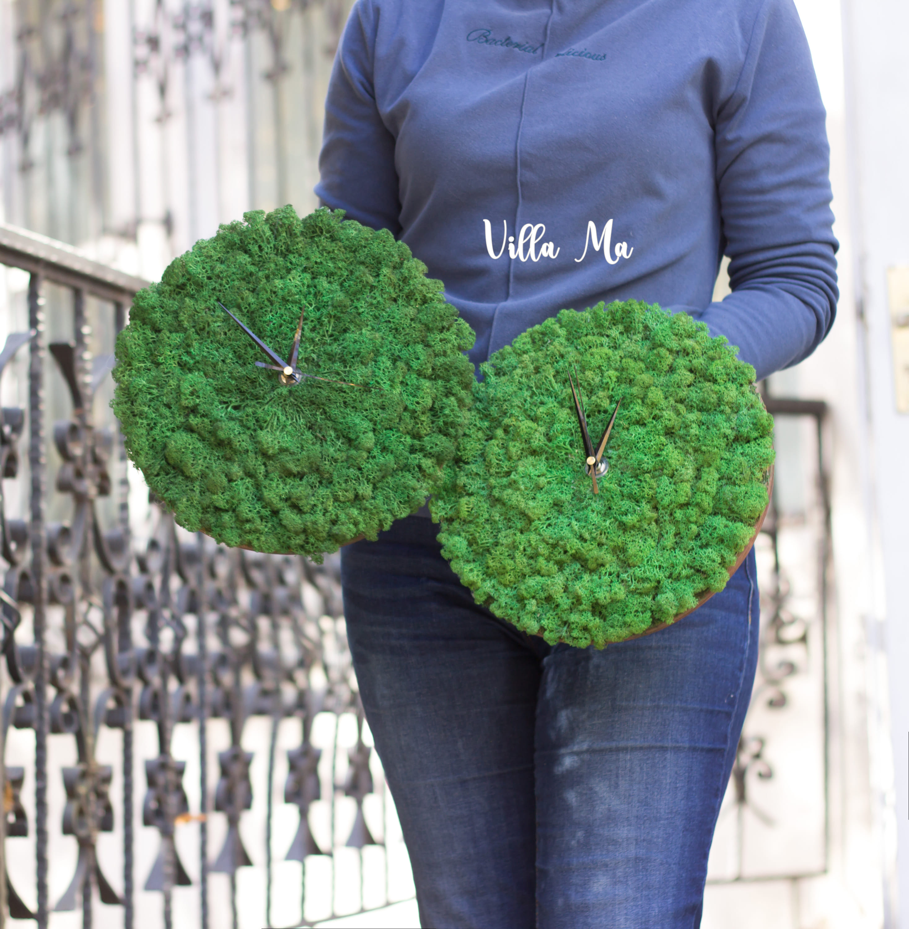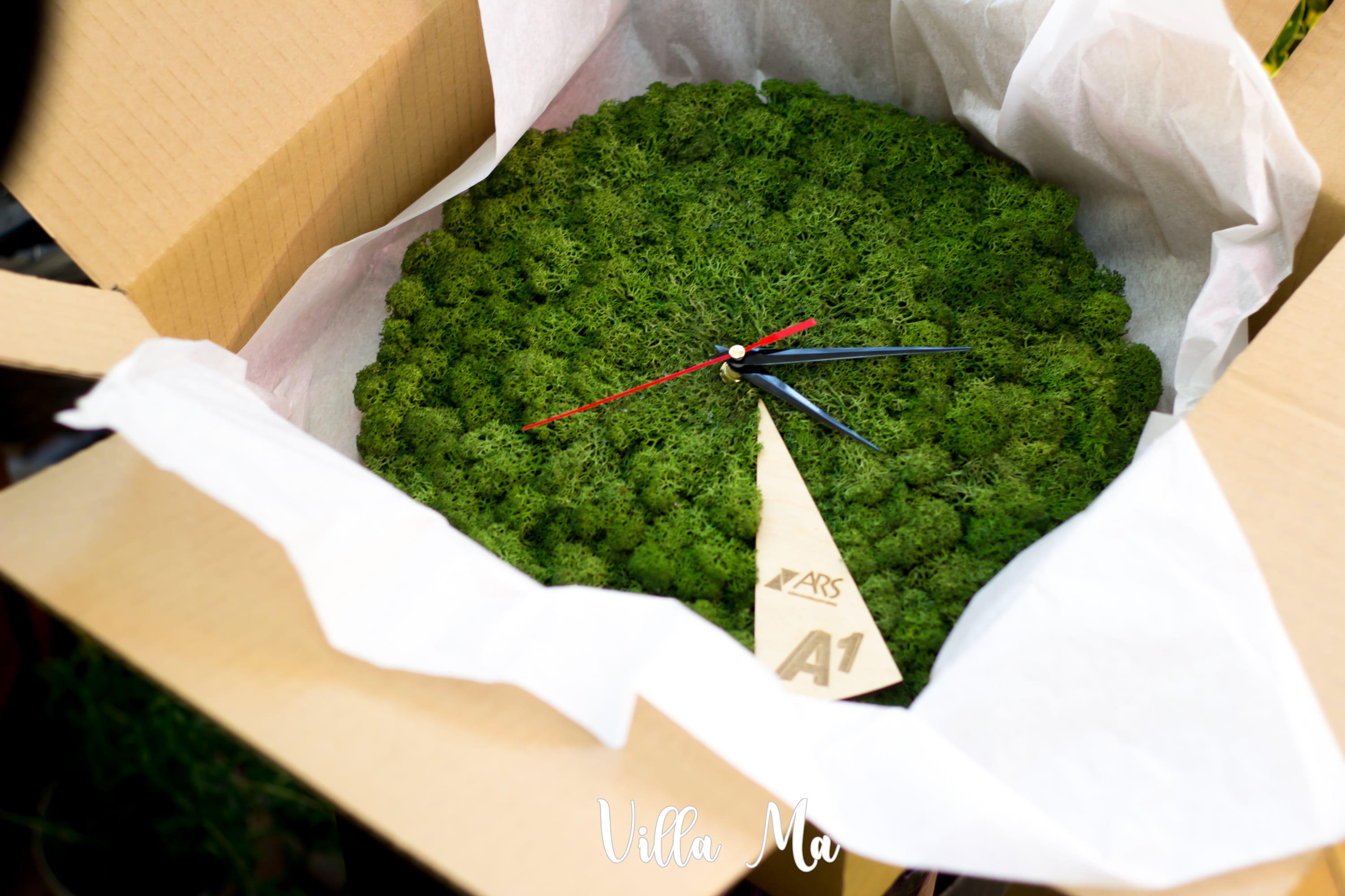 Эти зелёные Часы - панно не требуют ухода, полива, мох сохраняет свою пластичность, мягкость и расцветку.