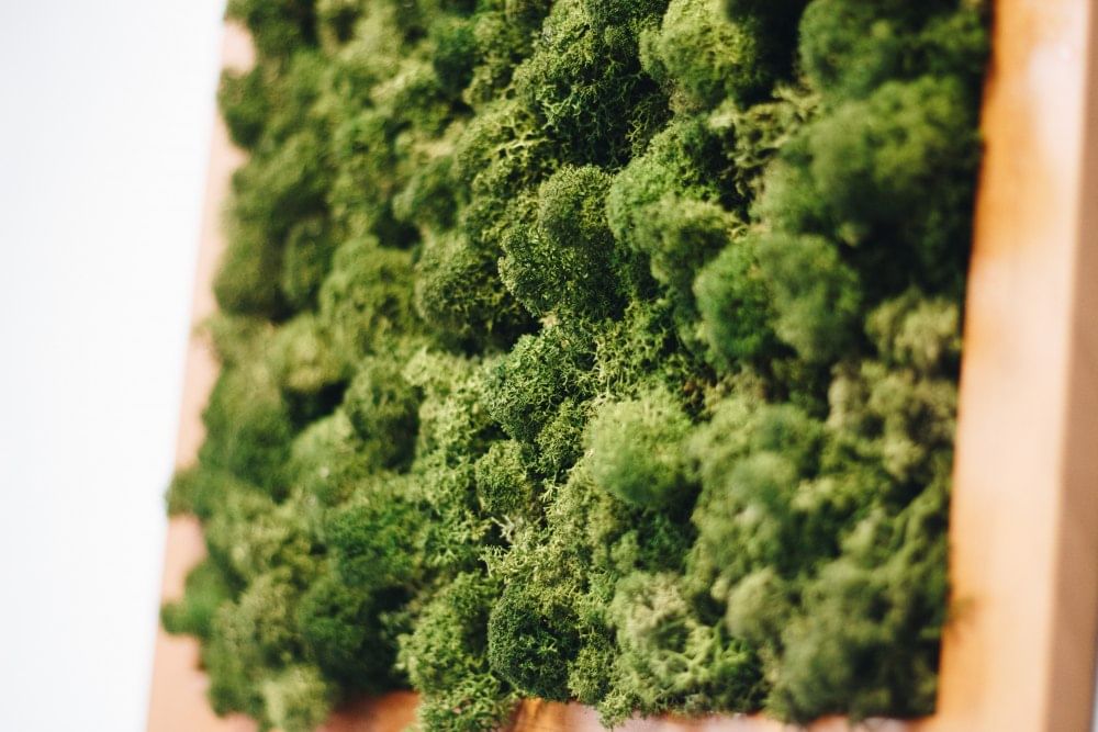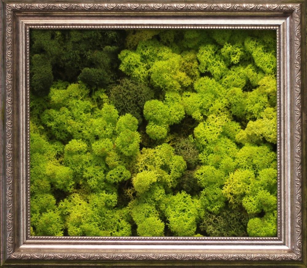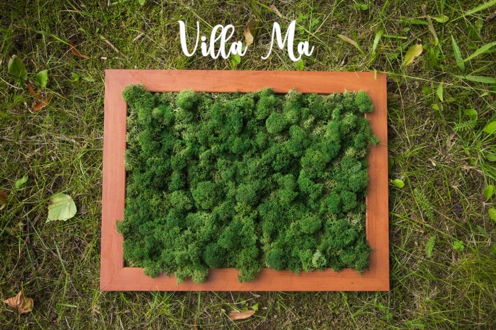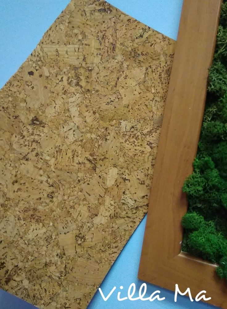 Используется финский стабилизированный натуральный мох, который обработан по специальной технологии, позволяющей ему сохранять свою мягкость, упругость, цвет, аромат на долгие годы. Основа - плотная пробковая натуральная.